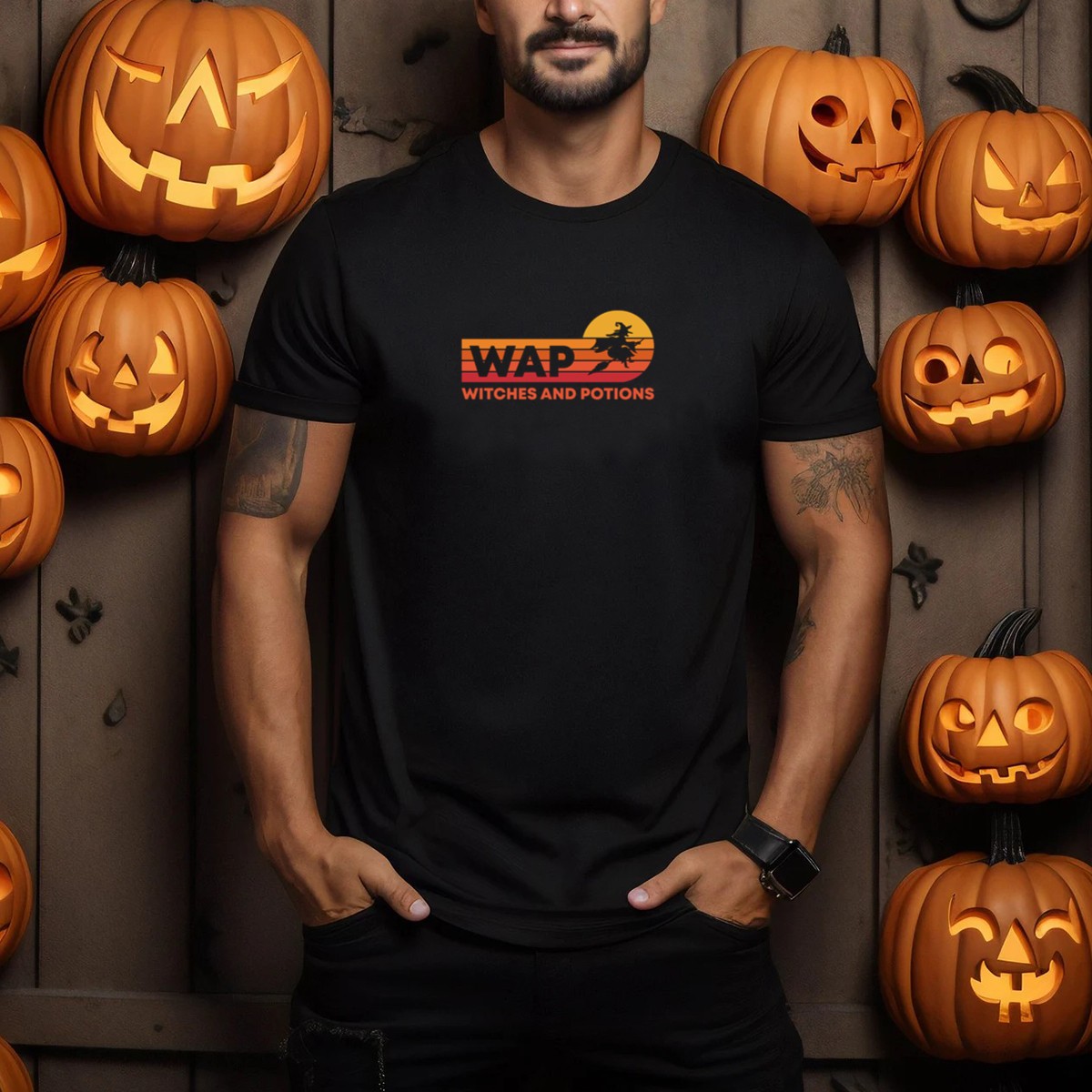 Embrace the spooky season with our Wap Retro Halloween Witches And Potions Costume T-Shirt, perfect for those who love to celebrate Halloween in style! This fan-made design features a whimsical and enchanting print that captures the essence of witches and potions, making it a must-have for themed events, casual outings, or just to showcase your festive spirit. Crafted for comfort and durability, this T-shirt is ideal for anyone looking to add a touch of Halloween magic to their wardrobe.