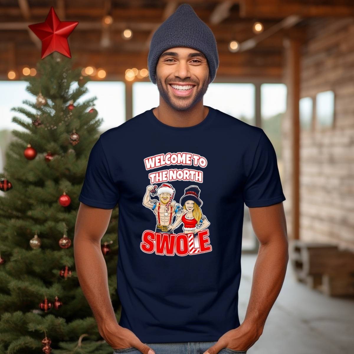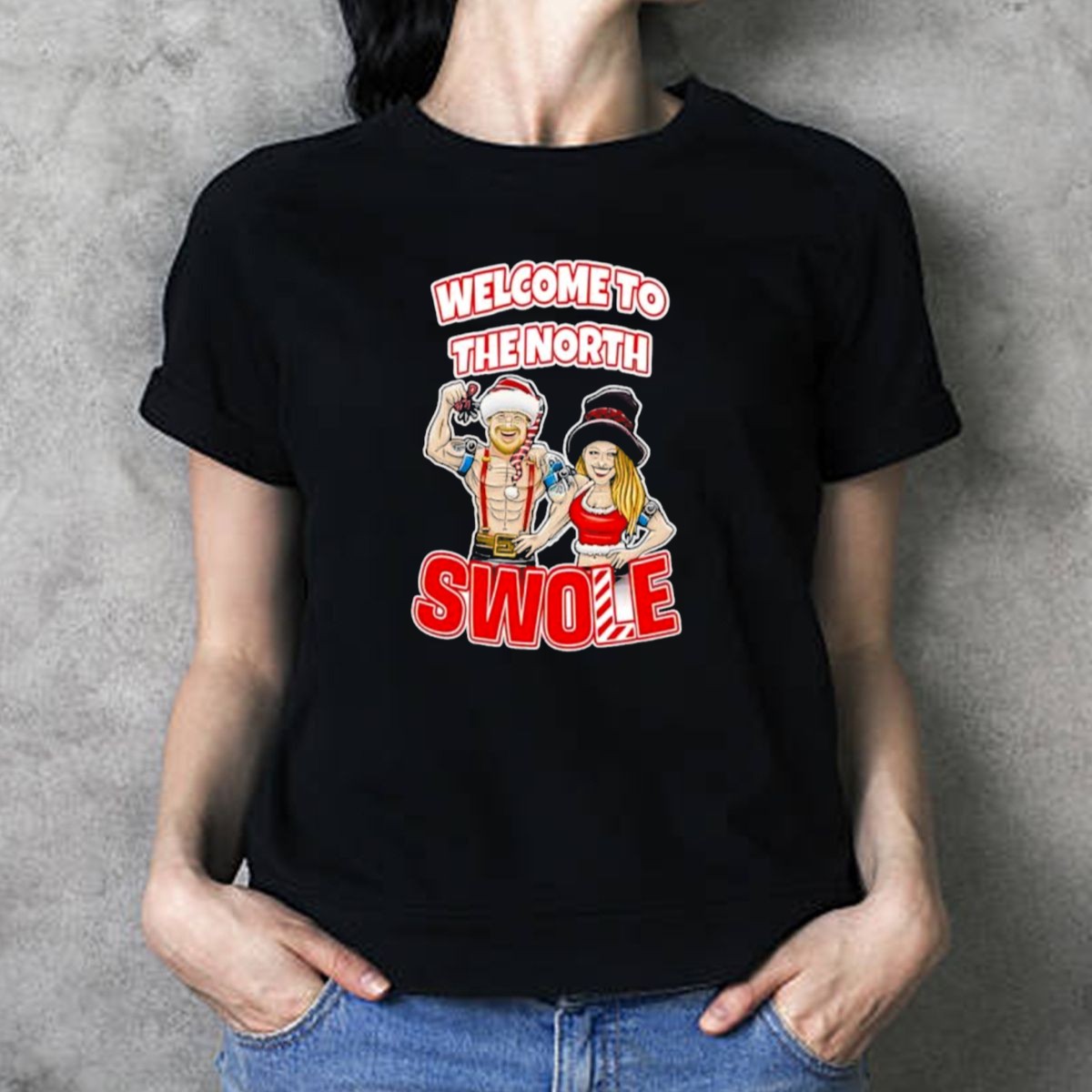 Celebrate the holiday season with a twist of humor and fitness in our “Welcome To The North Swole Santa Elf” T-shirt! Perfect for fitness enthusiasts and holiday lovers alike, this shirt makes a fantastic addition to your casual wardrobe. Whether you’re heading to the gym, attending a festive gathering, or simply lounging at home, this fan-made design, printed in the USA, will keep you looking merry and motivated all season long!