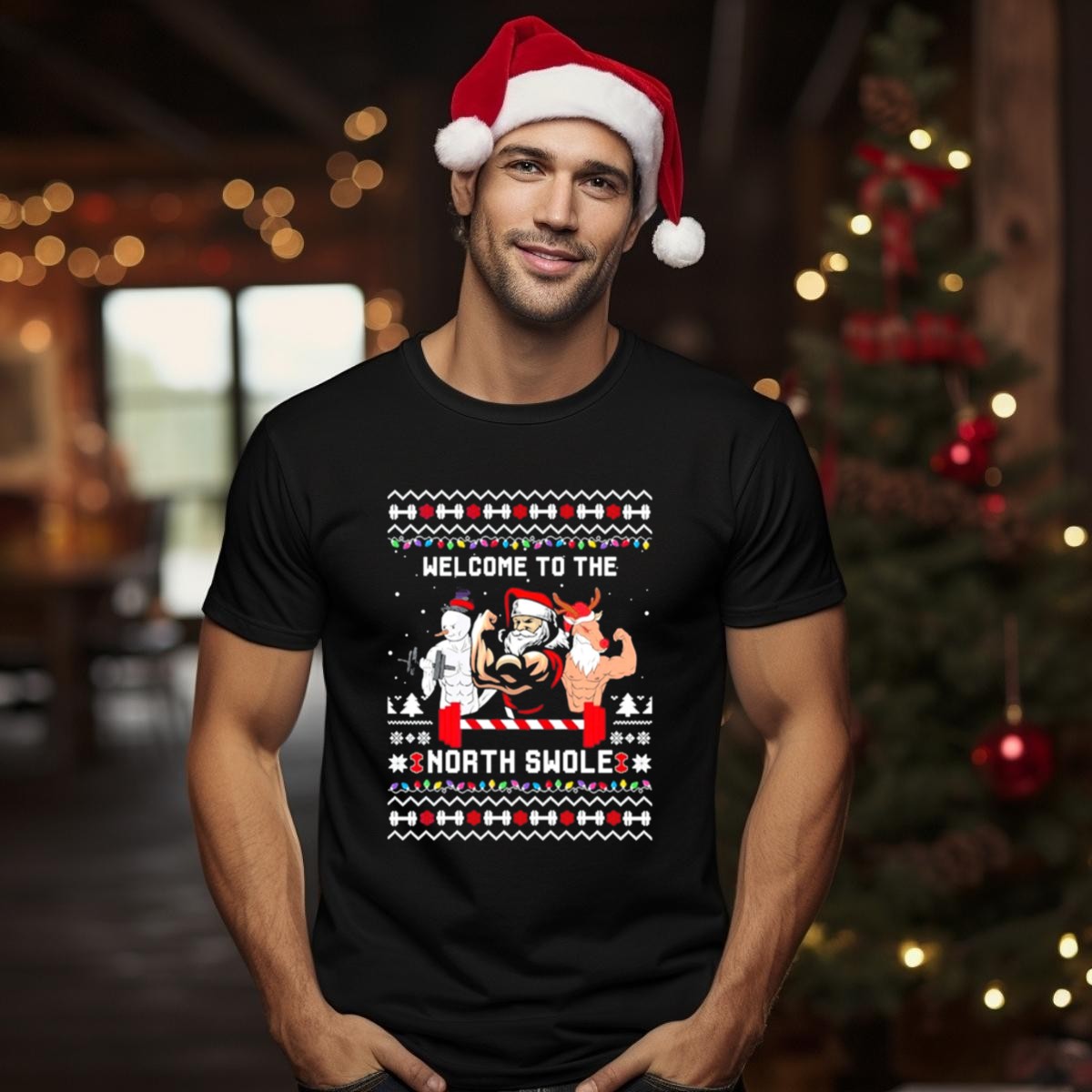 Welcome To The North Swole Santa Snowman Reindeer Fitness Christmas T Shirt