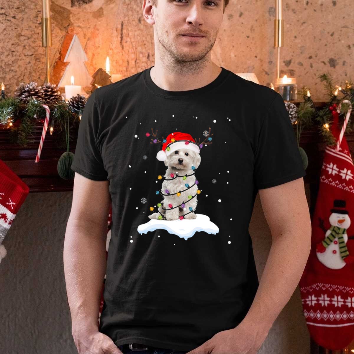Celebrate the festive season with our charming West Highland White Terrier T-shirt, featuring an adorable design of a playful pup adorned with a Santa hat, wrapped in Christmas lights, surrounded by snowflakes and reindeer antlers. This fan-made graphic tee is perfect for dog lovers and holiday enthusiasts alike, making it an ideal choice for casual wear, themed events, or simply spreading cheer during the holidays. Crafted for comfort and style, it’s a delightful addition to your all-season wardrobe!