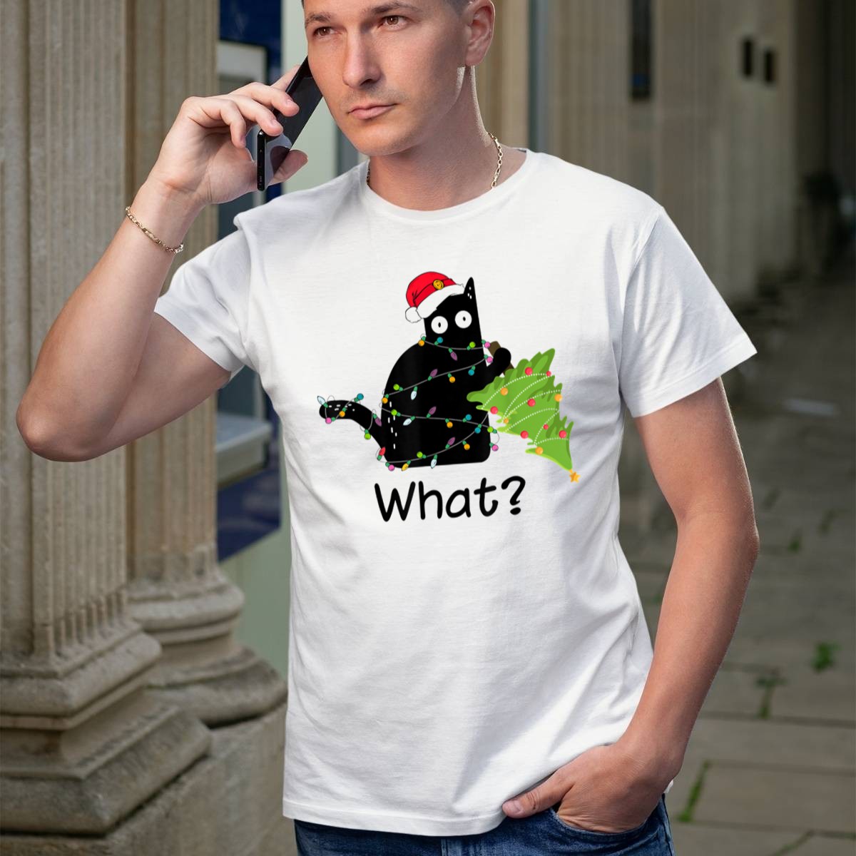 Celebrate the festive season with our charming “What Black Cat Christmas Lights Tree Santa Hat” T-shirt! This playful design is perfect for cat lovers and those who enjoy a whimsical twist on holiday attire. Whether you’re decorating the tree, attending a themed event, or simply lounging at home, this shirt adds a touch of cheer to your casual wear. Made in the USA, its unique fan-made design ensures you stand out at any gathering!