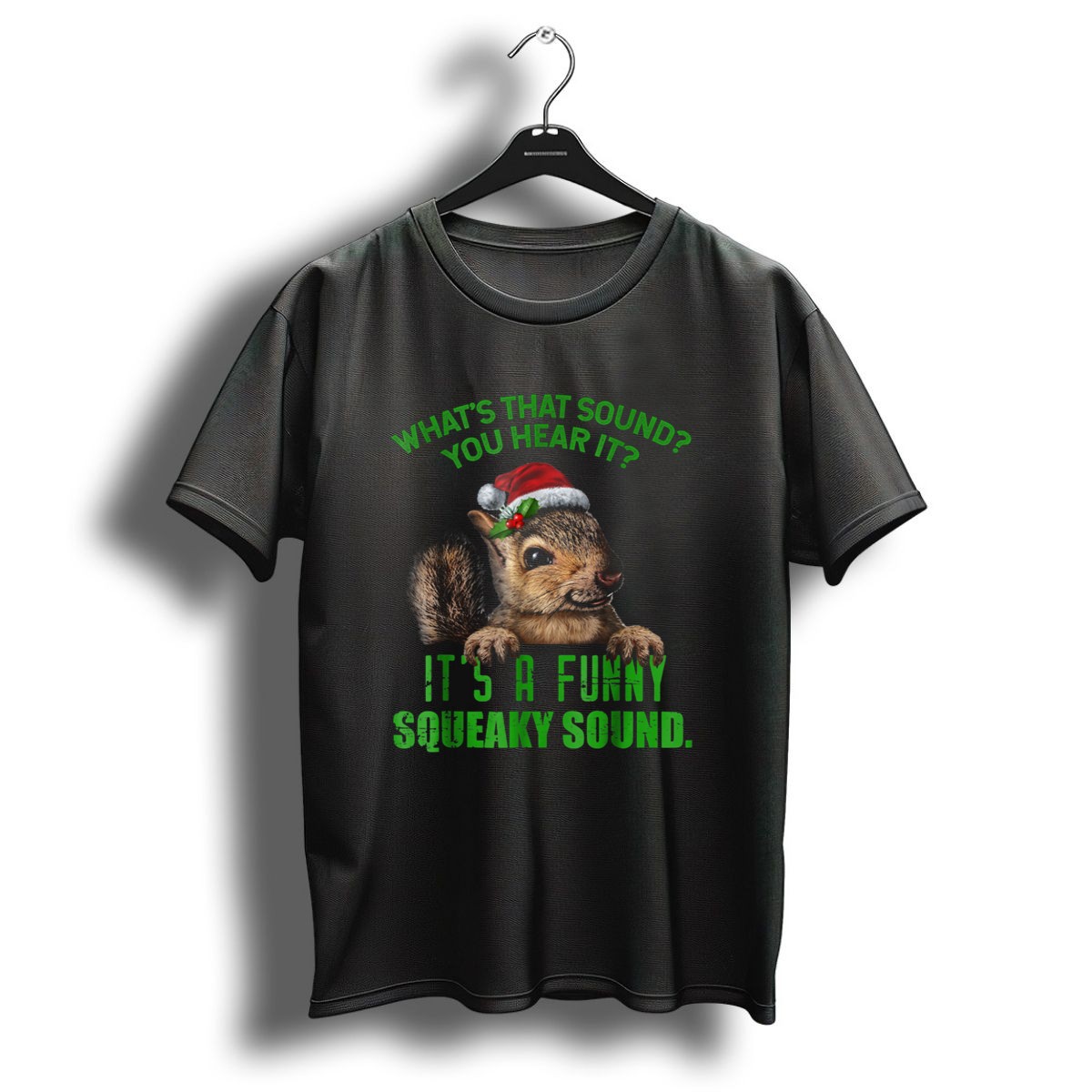 Get into the festive spirit with our “What’s That Sound? You Hear It? It’s a Funny Squeaky Sound Christmas Squirrel” T-shirt! Perfect for animal lovers and holiday enthusiasts alike, this shirt adds a playful touch to your casual wear. Whether you’re attending a family gathering, a themed event, or simply enjoying daily outings during the holiday season, this fan-made design, printed in the USA, is sure to bring smiles and laughter wherever you go.