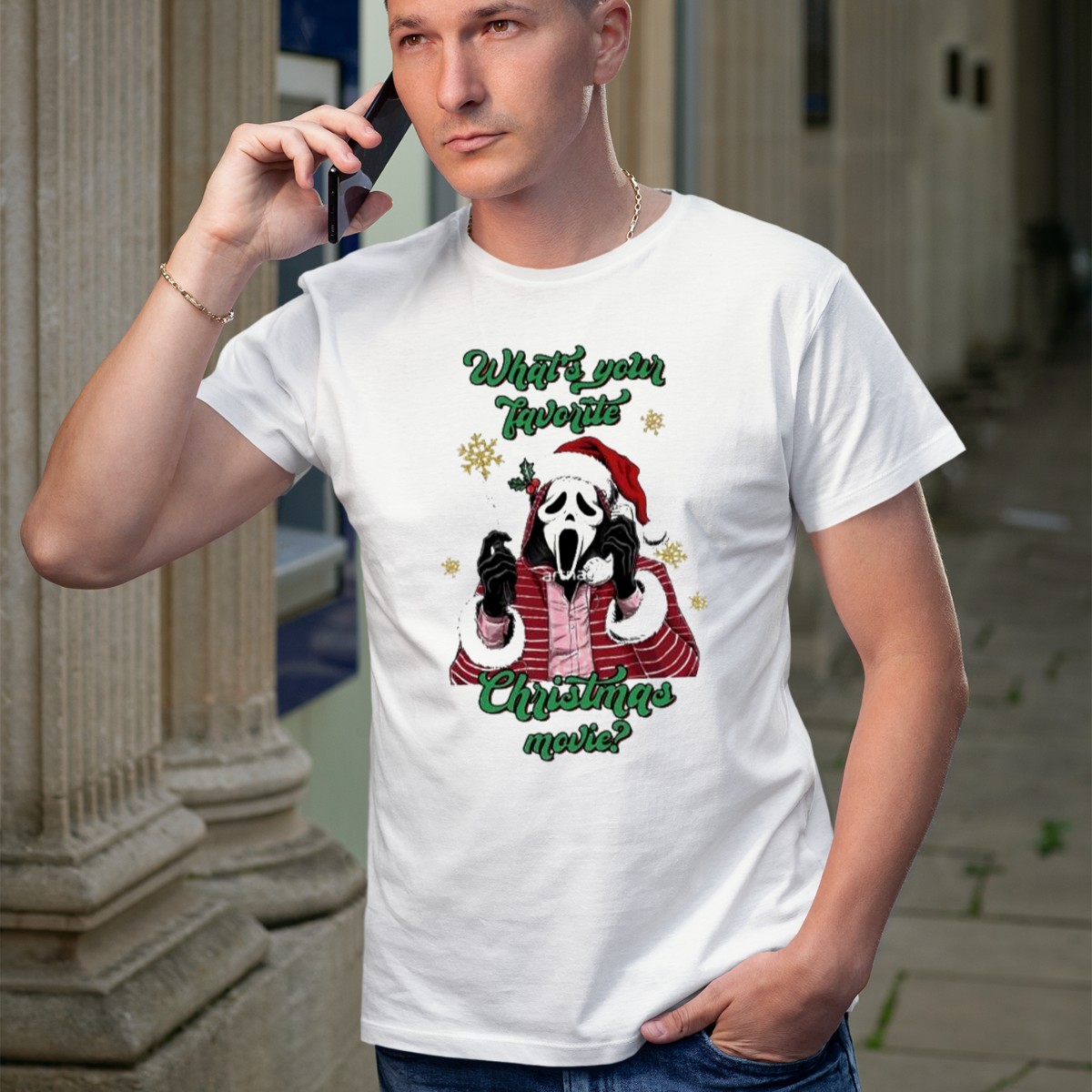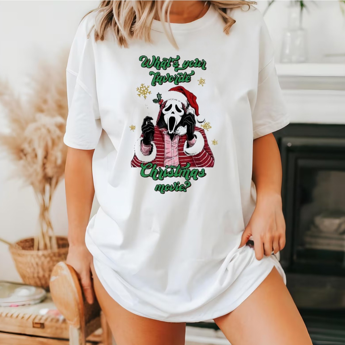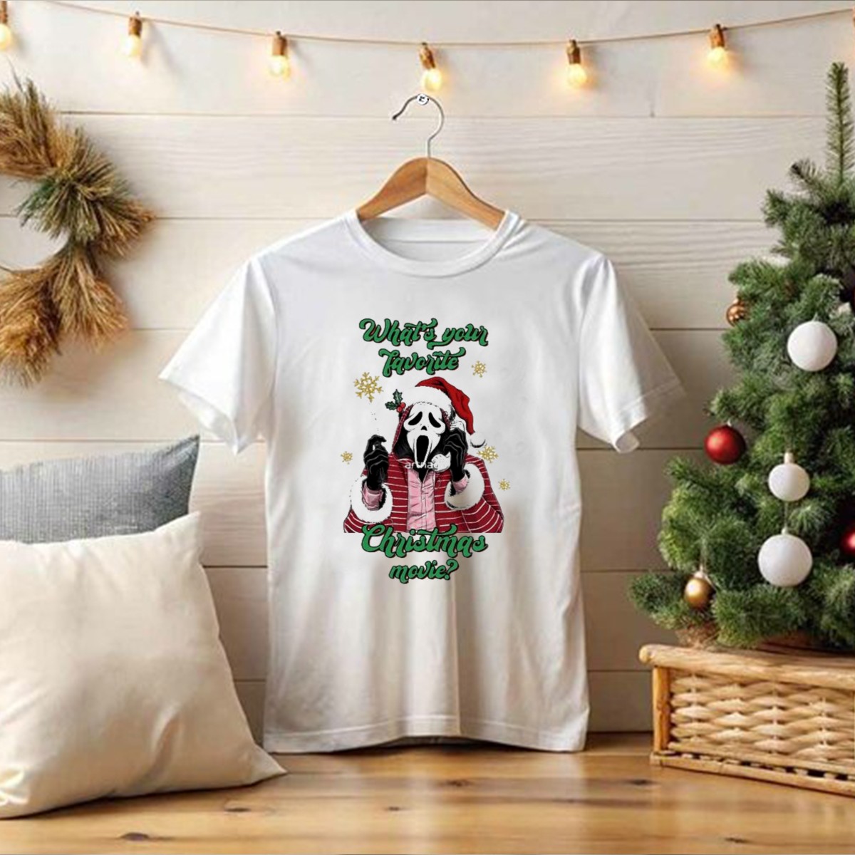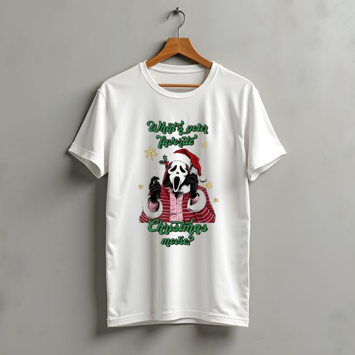 Get ready to celebrate the festive season with our “What’s Your Favorite Christmas Movie Santa Skeleton Ghost Face Costume T-Shirt”! This unique fan-made design showcases a fun twist on holiday spirit, perfect for movie lovers and those who enjoy a playful take on Christmas. Ideal for casual gatherings, themed events, or just lounging around during the holidays, this shirt is sure to spark conversations and spread cheer wherever you go!