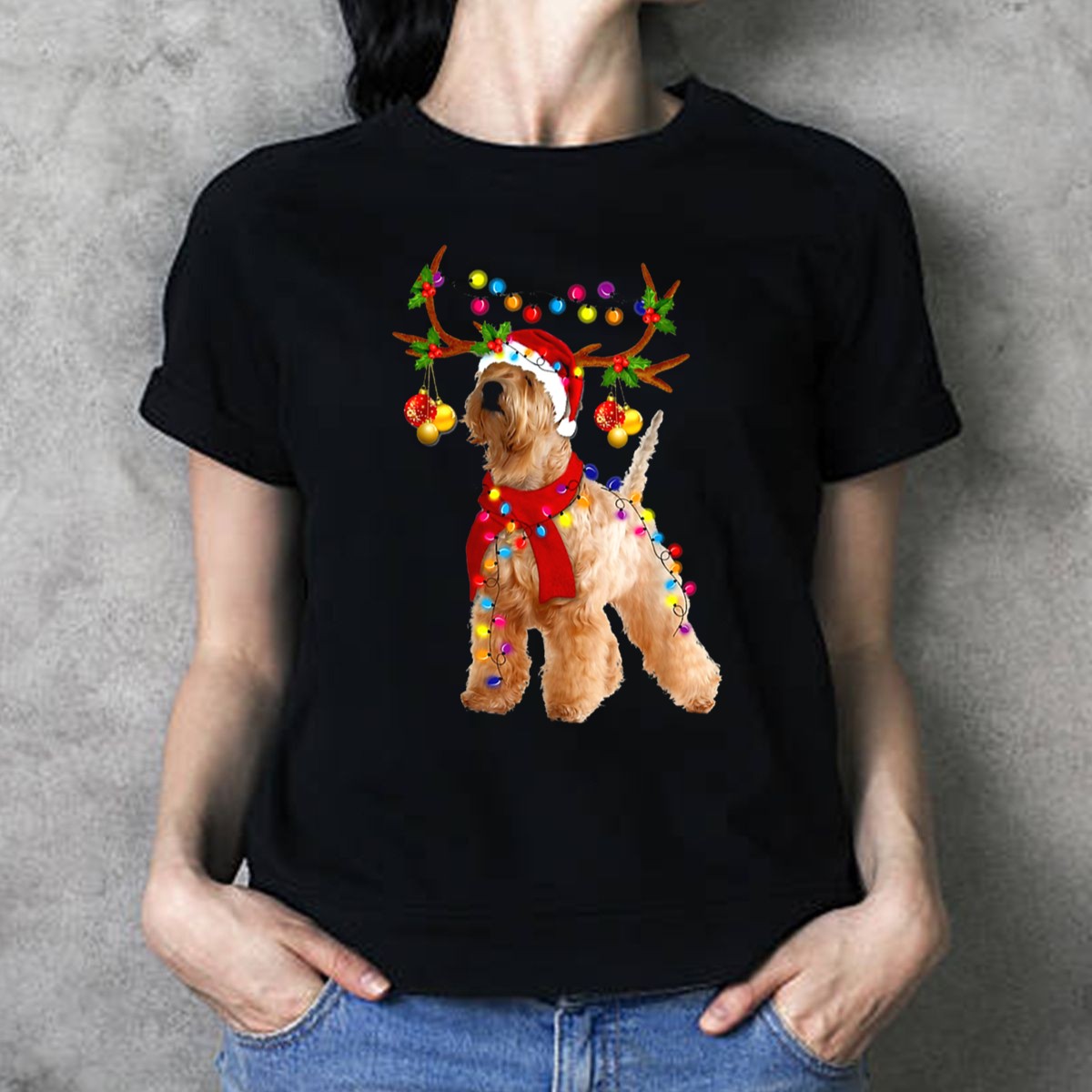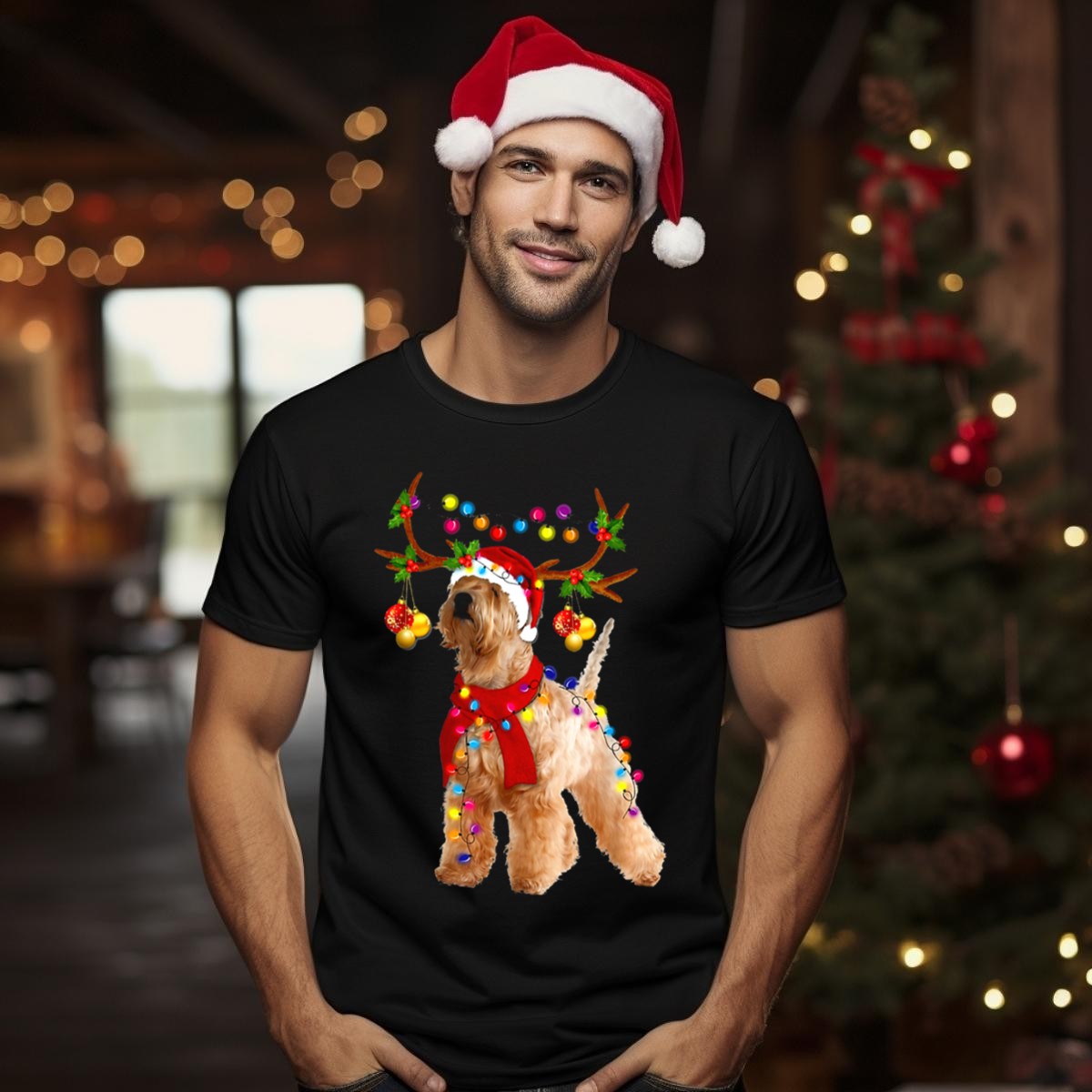 Be the first to review “Wheaten Terrier Santa Reindeer With Festive Christmas Lights T Shirt”