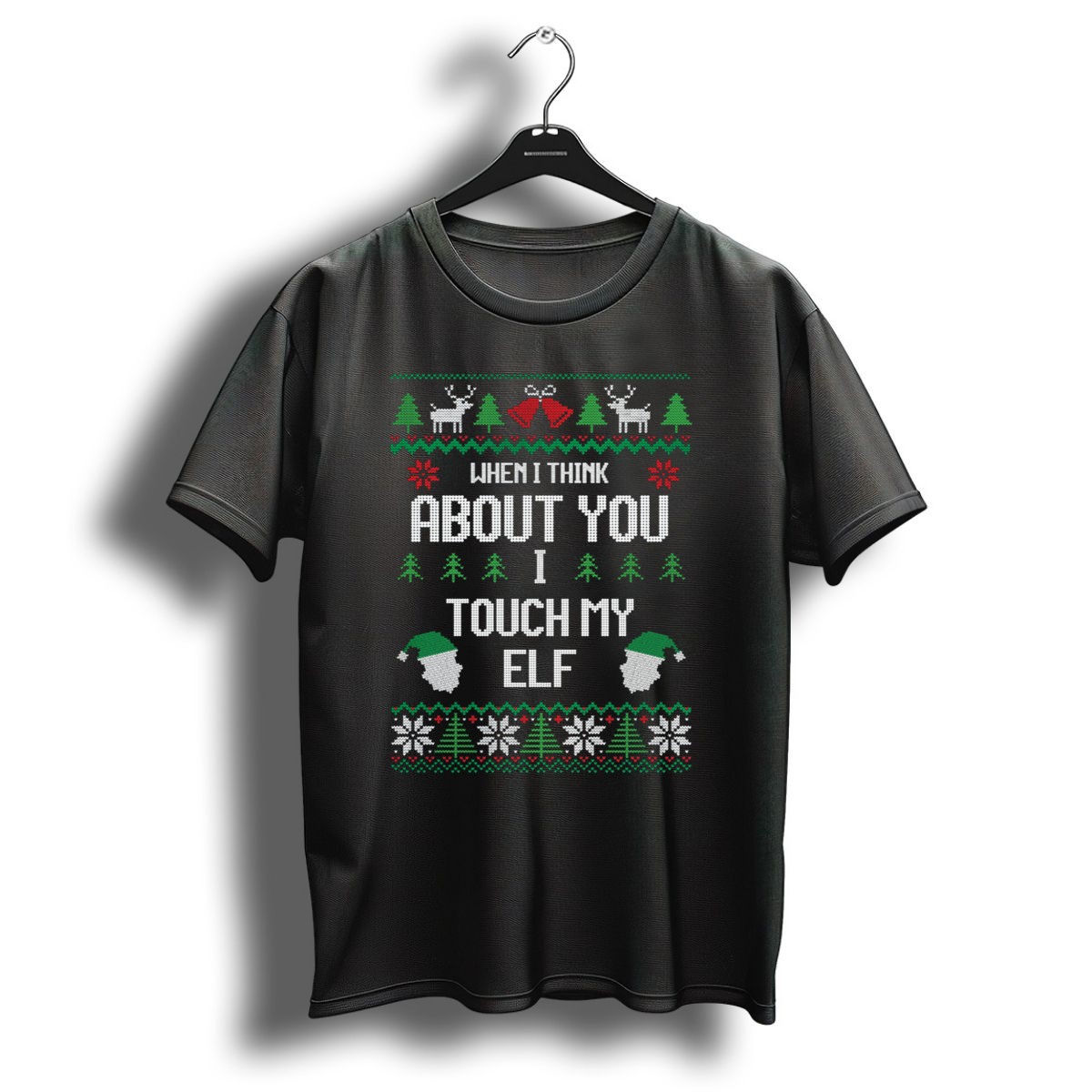 Celebrate the holiday spirit with our “When I Think About You I Touch My Elf” Christmas T-Shirt, perfect for those who love a good laugh during the festive season! This fun, fan-made design is ideal for casual wear, themed events, or simply spreading holiday cheer among friends and family. Crafted for comfort and style, it’s a must-have for anyone looking to add a playful touch to their wardrobe this Christmas!