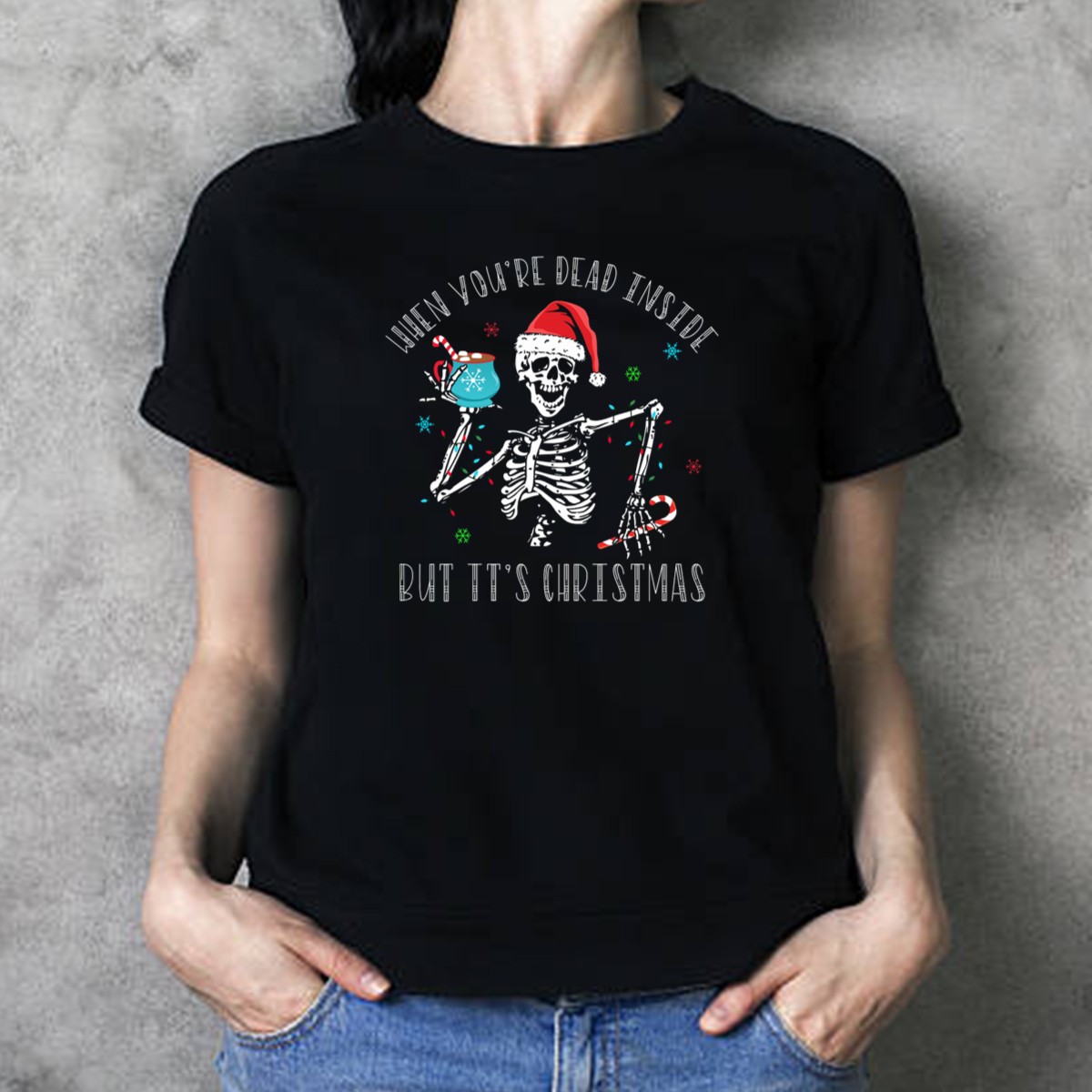 Embrace the holiday spirit with a twist in our “When You’re Dead Inside But It’s Christmas” Skeleton T-Shirt. Perfect for those who find humor in the darker side of life, this fan-made design adds a unique touch to your festive wardrobe. Ideal for casual wear, themed events, or just lounging around during the holidays, it’s a fun way to showcase your personality while celebrating the season. Printed proudly in the USA, this shirt combines comfort and style effortlessly.