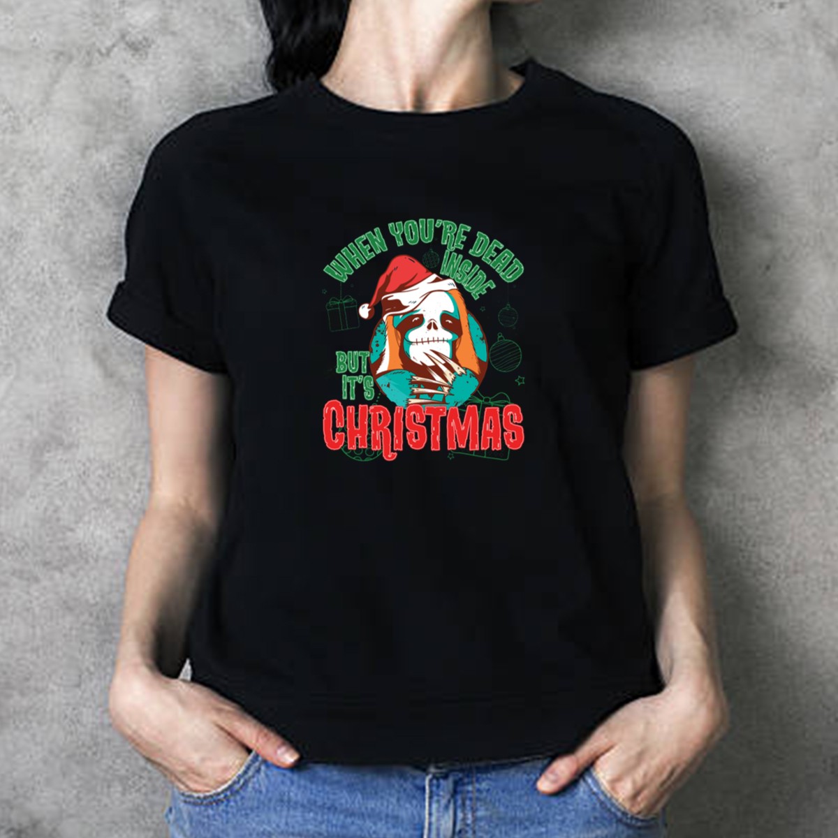 Embrace the holiday spirit with a twist of humor in our “When You’re Dead Inside But It’s Christmas” Sloth Santa Skeleton T-Shirt! Perfect for those who love to celebrate the season with a touch of sarcasm, this fan-made design is ideal for casual outings, themed parties, or simply lounging at home. With its unique blend of festive cheer and dark humor, this shirt is sure to be a conversation starter at any gathering.