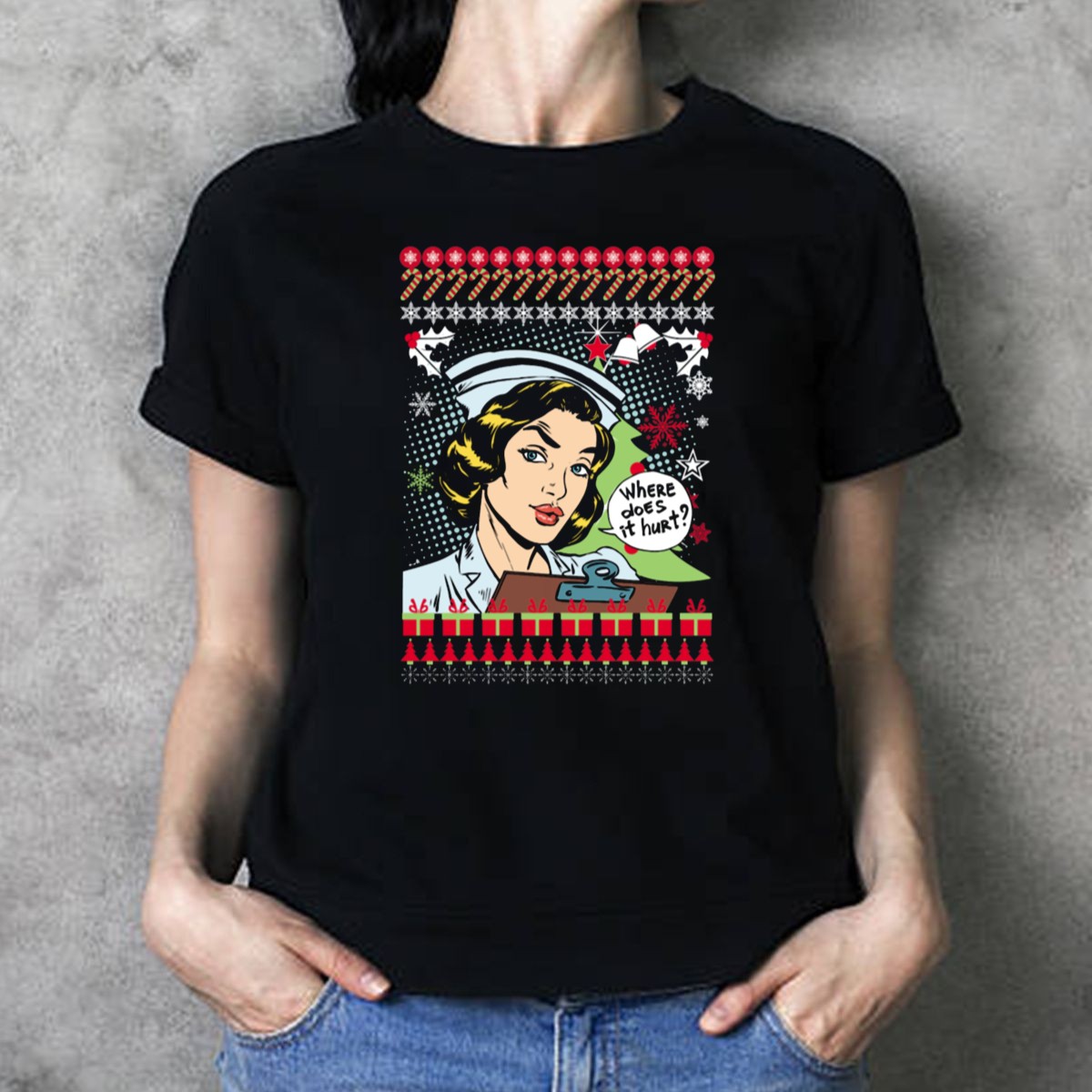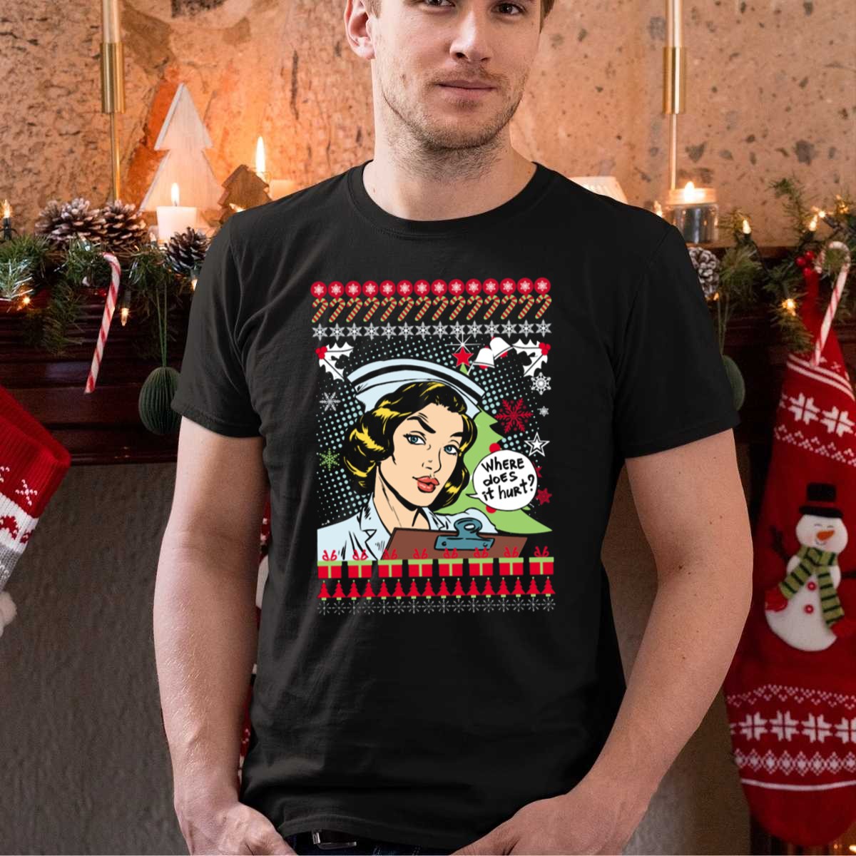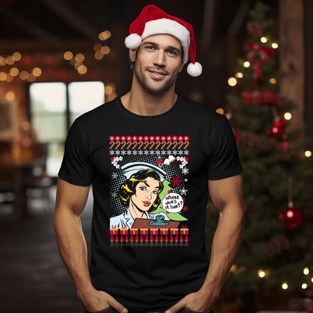 Celebrate the holiday season with a touch of humor in our “Where Does It Hurt” Nurse Ugly Christmas T-Shirt! Perfect for healthcare heroes, this fun and festive shirt is ideal for casual wear, themed events, or simply showcasing your nursing pride during the holidays. Made with a fan-made design printed right here in the USA, this tee combines comfort and style for those who dedicate their lives to caring for others.