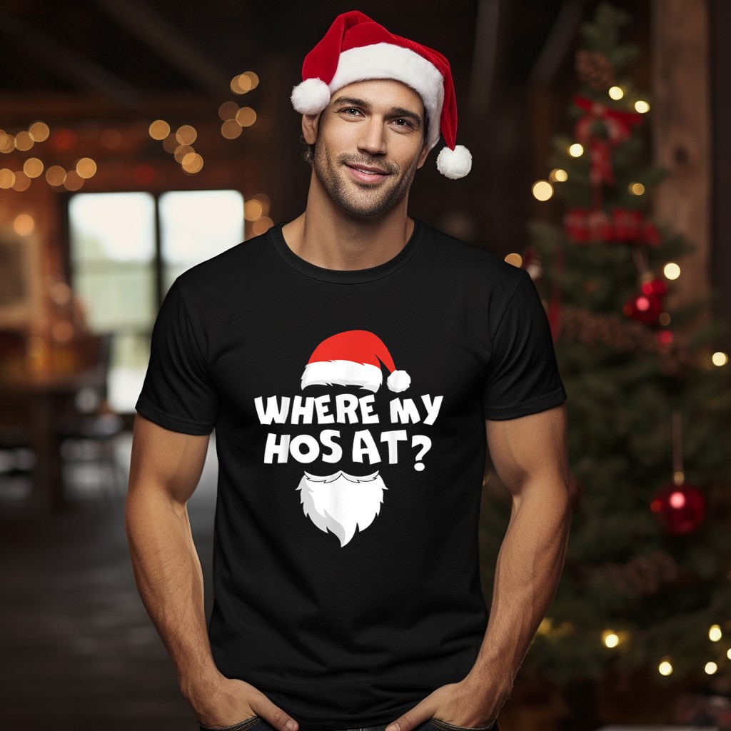 Get ready to spread some holiday cheer with our “Where My Hos At Christmas” Funny Santa Claus Ho Ho Ho T-Shirt! Perfect for those who love to combine humor with festive spirit, this shirt is designed for anyone looking to make a statement at holiday parties, themed events, or casual gatherings. Its unique fan-made design, printed right here in the USA, ensures you stand out in style while staying comfortable all season long.