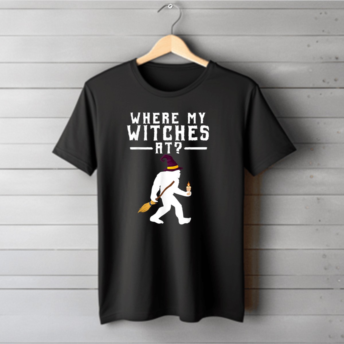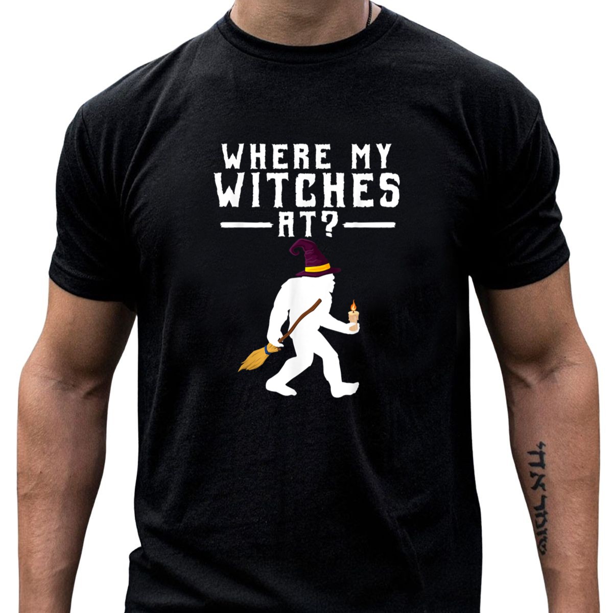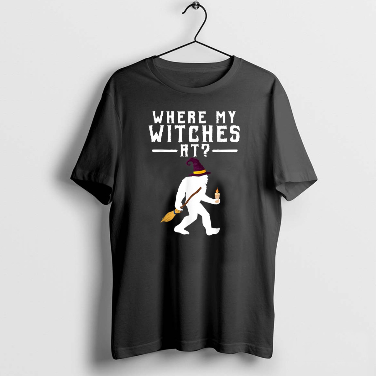 Unleash your inner witch this Halloween with our exclusive “Where My Witches At” Bigfoot Sasquatch T-shirt! Perfect for those who love a touch of humor in their spooky celebrations, this fan-made design features a whimsical Bigfoot holding a broom and candle, making it an ideal choice for casual wear, themed events, or daily adventures. Crafted for comfort and style, this shirt will keep you feeling great while you celebrate the season in style!