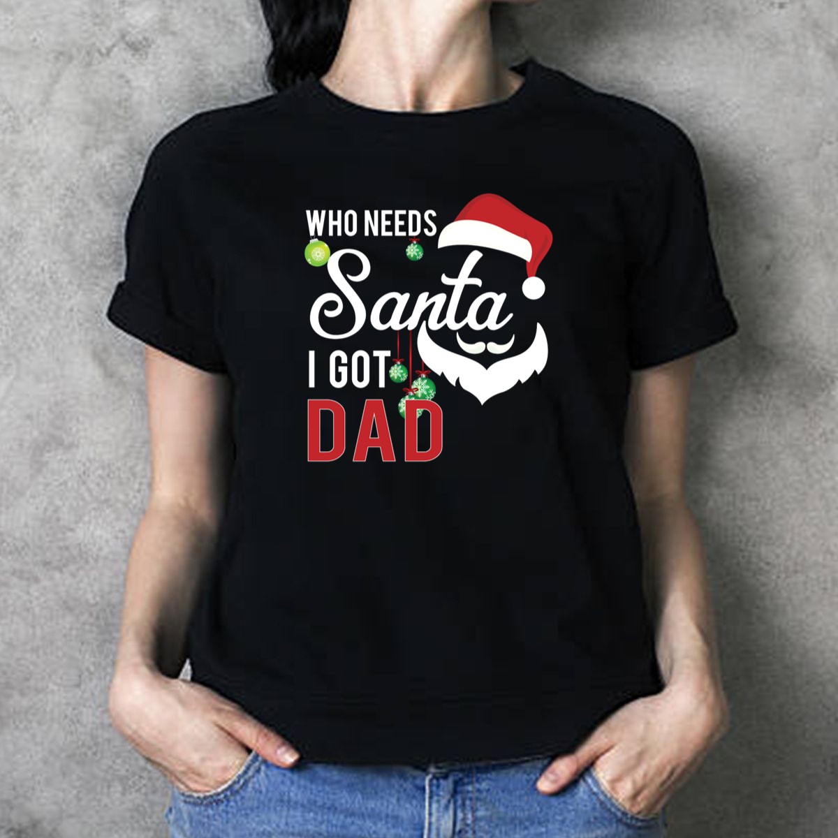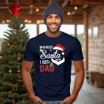 Celebrate the holiday season with our “Who Needs Santa I Got Dad” T-shirt, perfect for kids and adults alike who want to showcase their festive spirit with a fun twist. This shirt features a playful design of a Santa hat and beard adorned with ornaments, making it an ideal choice for family gatherings, themed events, or just casual wear throughout the season. Crafted for comfort and style, this fan-made shirt is printed in the USA, ensuring a unique look that stands out in any crowd.