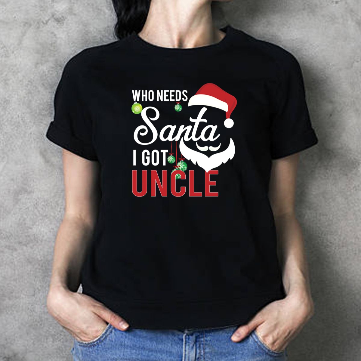 Celebrate the festive spirit with our “Who Needs Santa I Got Uncle Christmas Beard And Hat” T-shirt, perfect for those who cherish family traditions and enjoy a good laugh during the holiday season. This fun and quirky design is ideal for family gatherings, casual wear, or themed events, making it a must-have for anyone looking to spread joy and cheer. Crafted with love and printed in the USA, this shirt combines comfort and style, making it a unique addition to your holiday wardrobe.