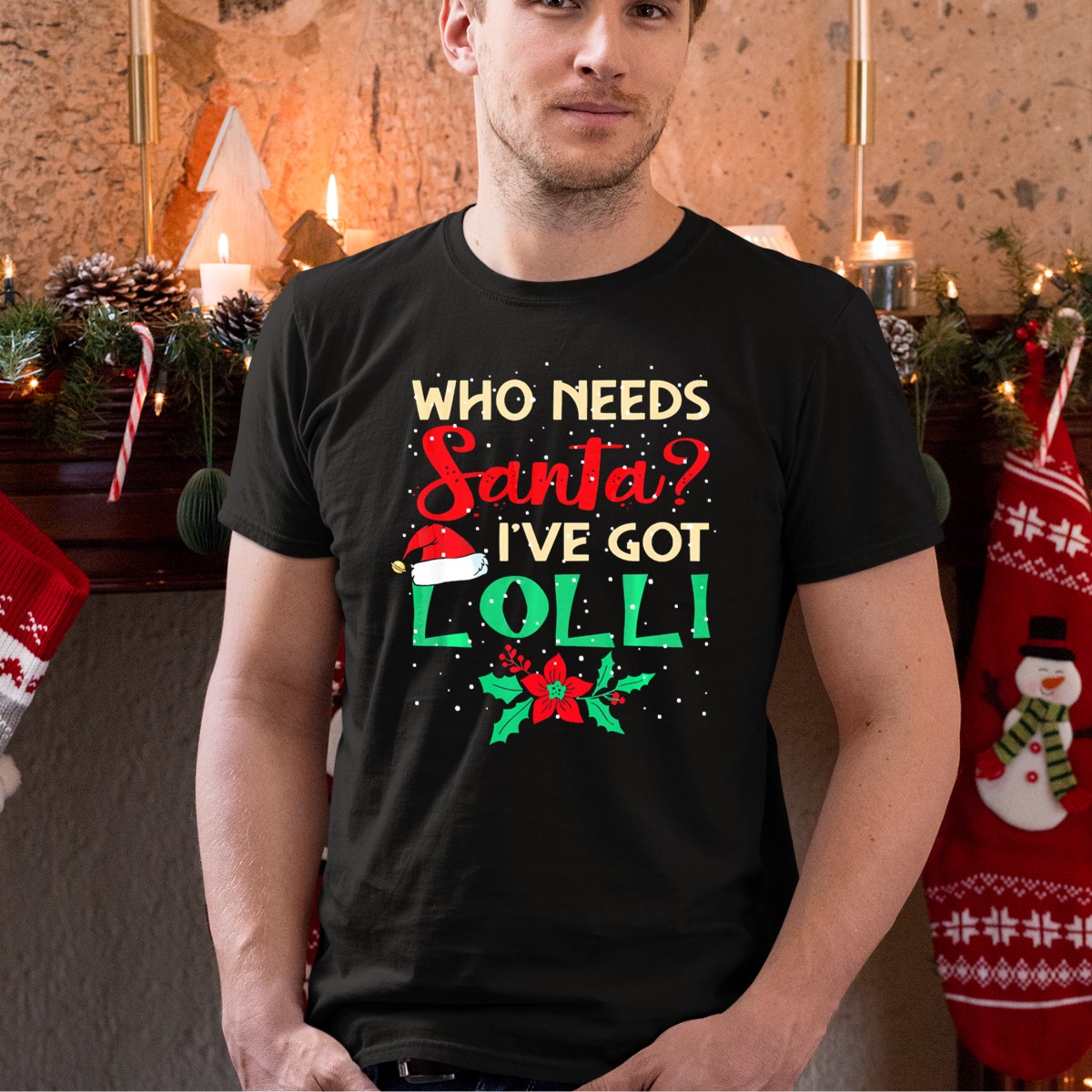 Celebrate the festive season with our “Who Needs Santa I’ve Got Lolli” Christmas T-shirt, perfect for those who love to spread holiday cheer! This fan-made design features a playful twist on the traditional Santa theme, making it an ideal choice for casual wear, themed events, or daily outings during the holiday season. Crafted for comfort and style, this shirt is sure to become a favorite in your winter wardrobe!