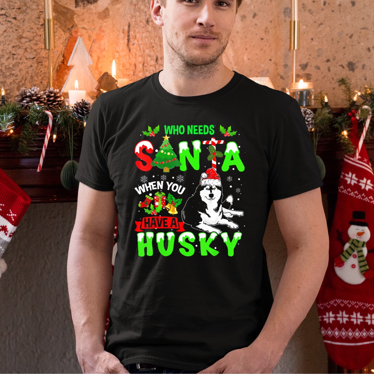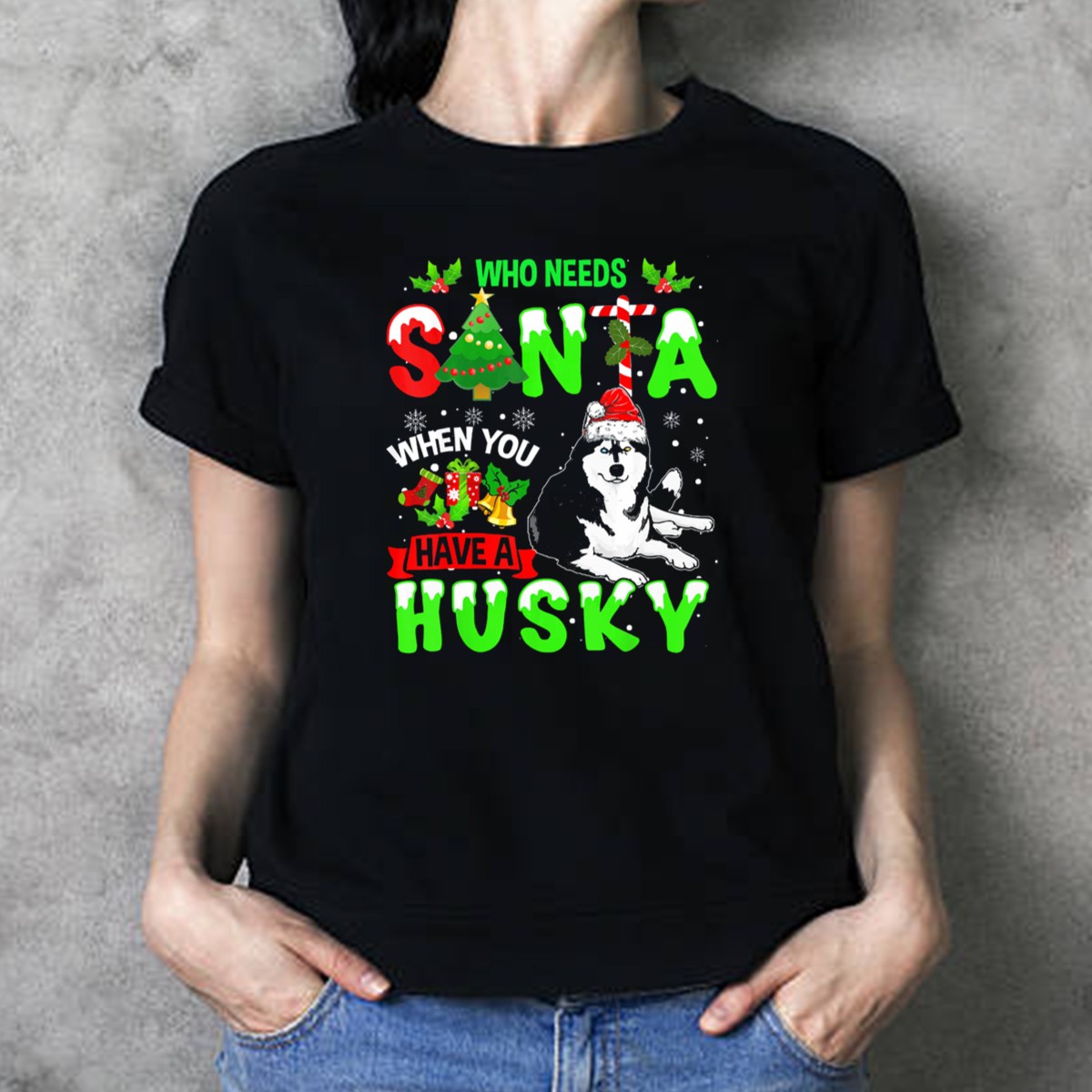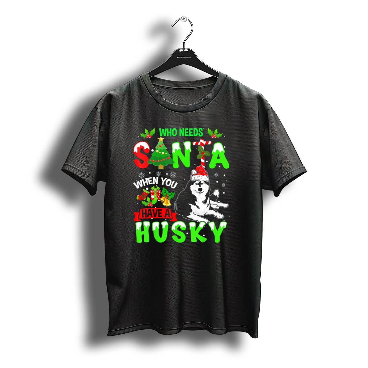 Who Needs Santa When You Have A Husky With Christmas Tree And Snowflakes T-Shirt