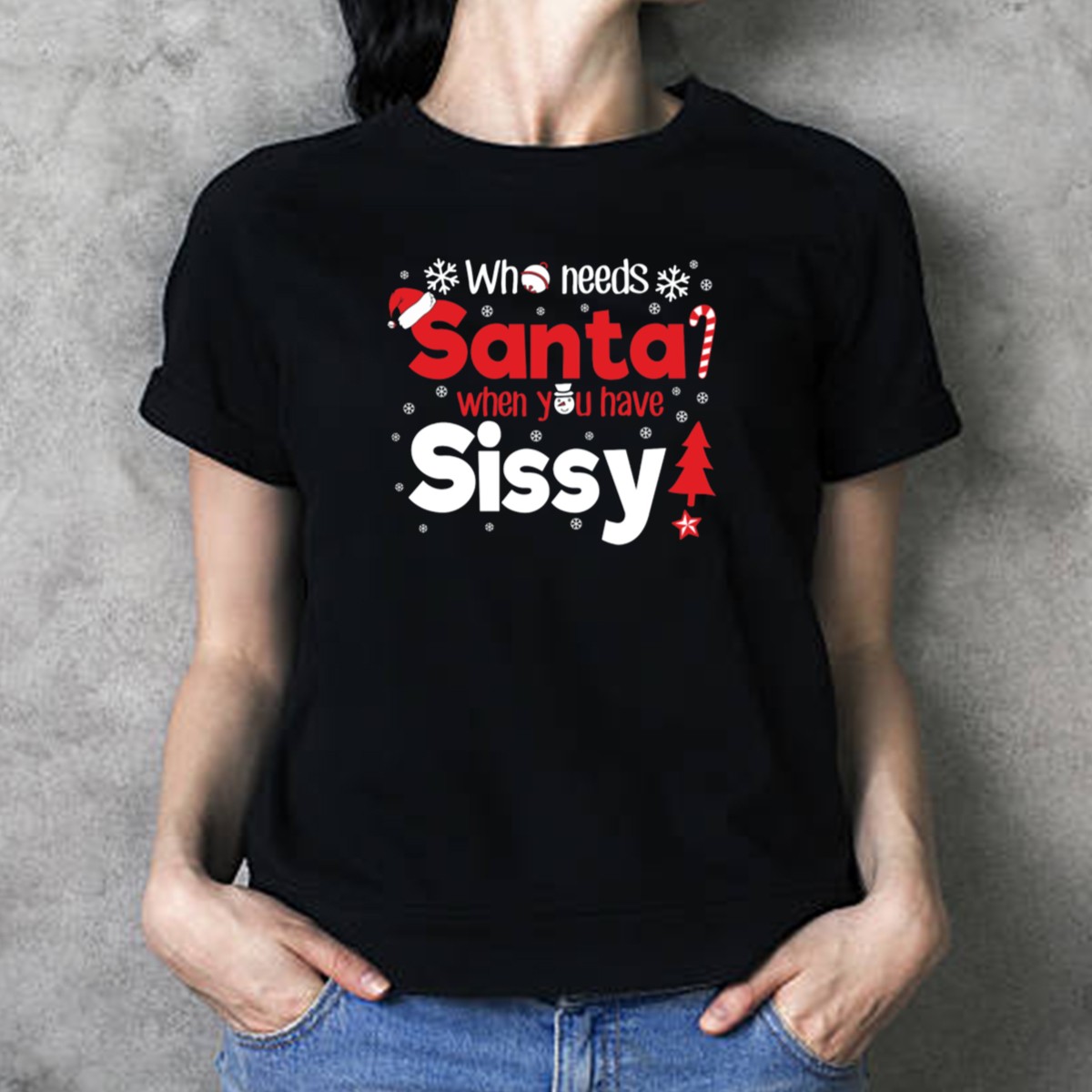 Celebrate the joy of the holiday season with our “Who Needs Santa When You Have Sissy” T-shirt, perfect for those who love to bring a little humor and warmth to festive gatherings. This fan-made design is a playful twist on traditional Christmas wear, making it an ideal choice for family gatherings, themed events, or casual outings. Crafted for comfort and style, this shirt will keep you feeling great while sharing laughs and spreading cheer.