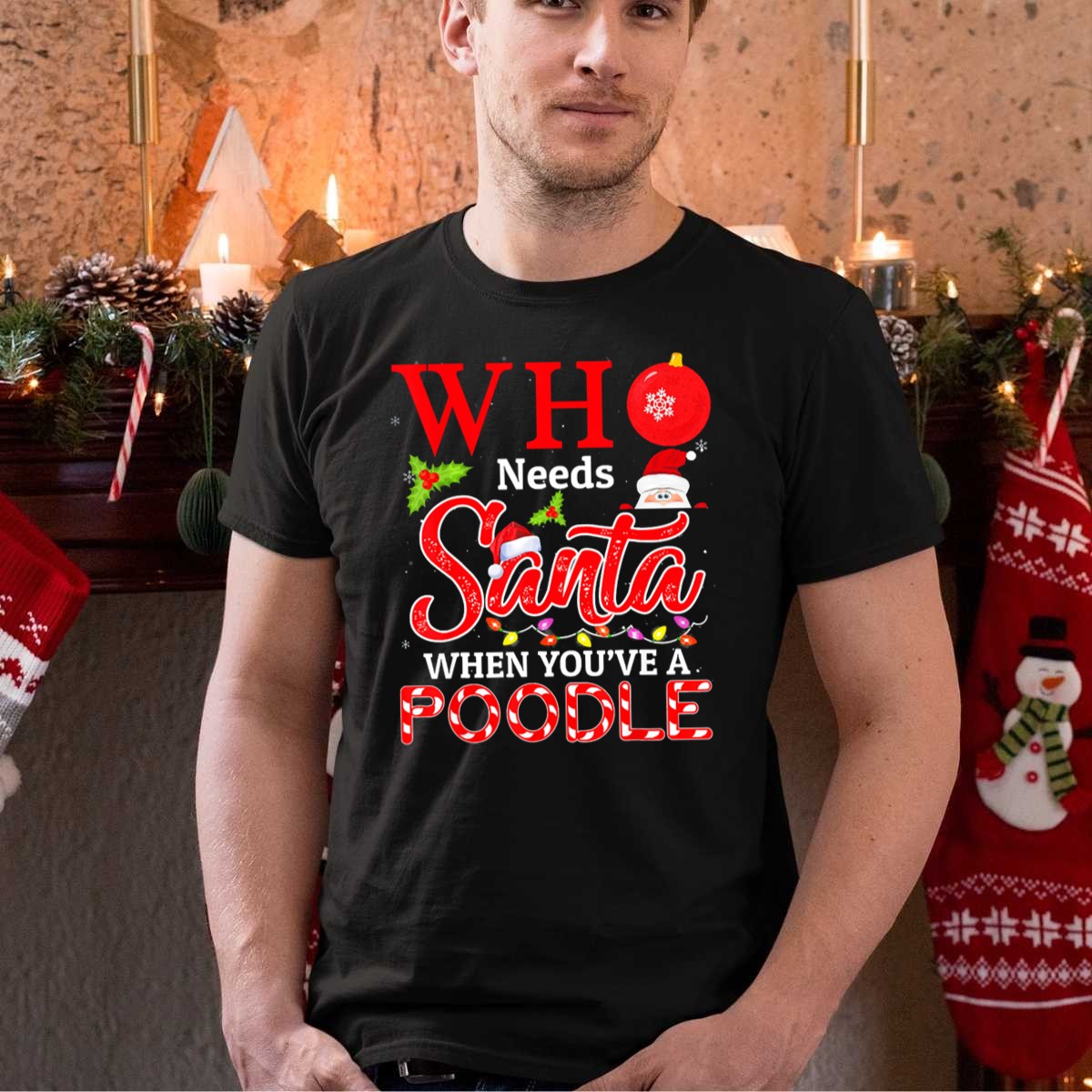 Celebrate the holiday spirit with our whimsical “Who Needs Santa When You’ve Got Ornament Santa Hat Lights Christmas Poodle” T-shirt! Perfect for dog lovers and festive enthusiasts alike, this fan-made design captures the joy and humor of the season. Ideal for casual wear, themed events, or just spreading cheer in your daily life, this shirt will make you the center of attention at any gathering. Made with care in the USA, it’s a must-have for anyone looking to add a playful touch to their holiday wardrobe.
