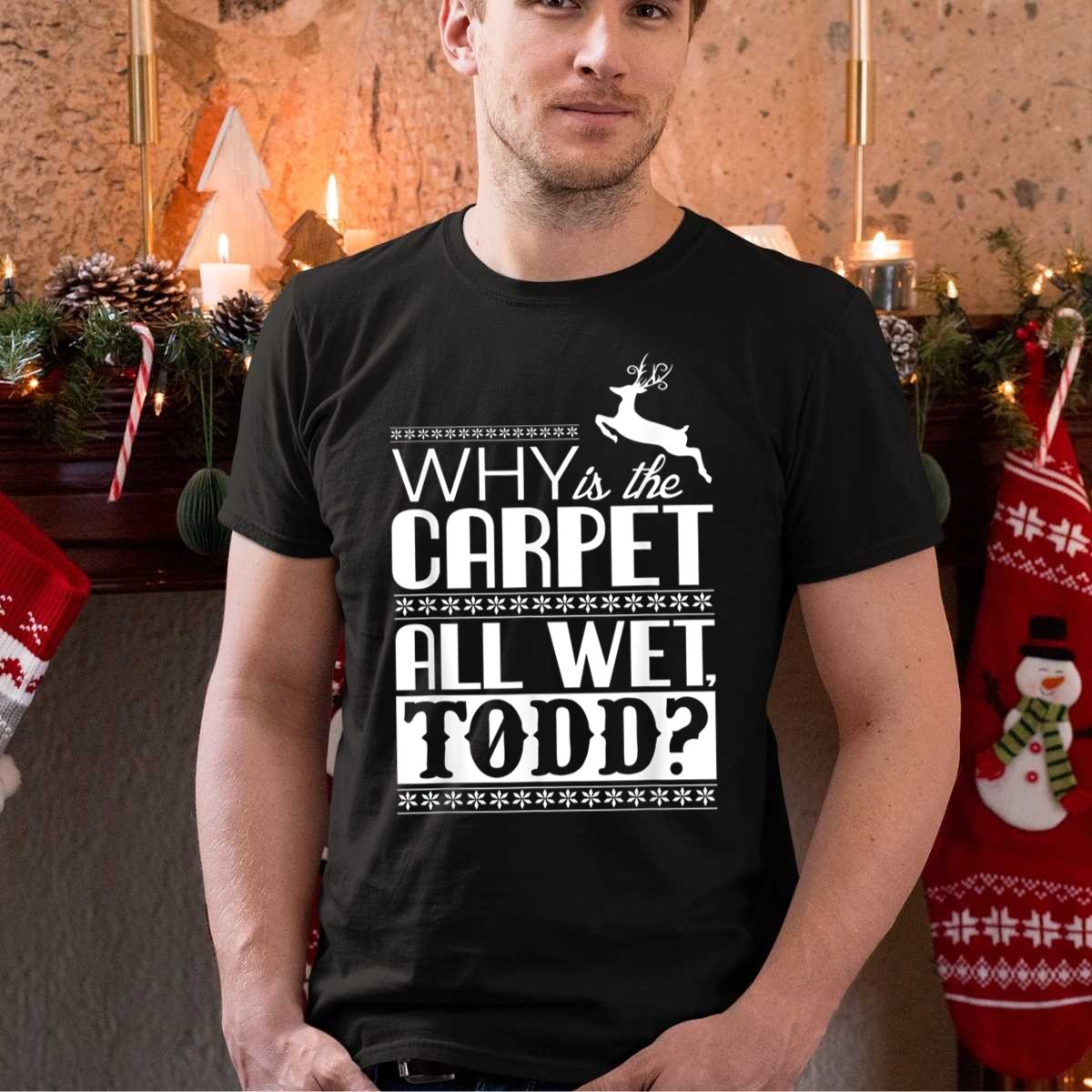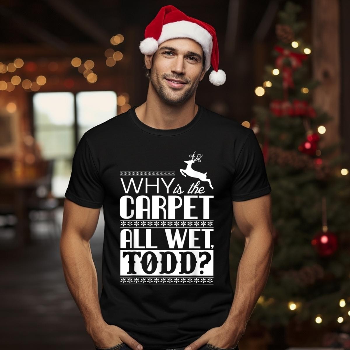 Celebrate the holiday season with a touch of humor in our “Why Is The Carpet All Wet” Todd Christmas Vacation Quote T-Shirt. Perfect for fans of the classic film, this shirt is designed for anyone looking to bring a smile to their friends and family at casual gatherings, themed events, or simply while lounging around the house. With a unique fan-made design printed in the USA, this shirt combines comfort and style, making it a must-have for every holiday enthusiast.