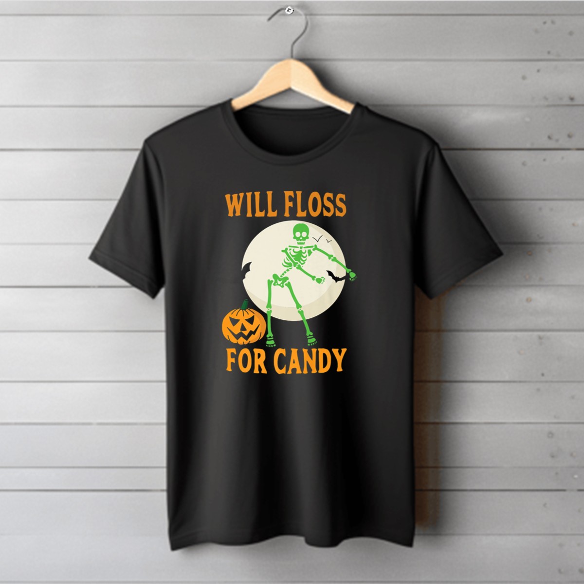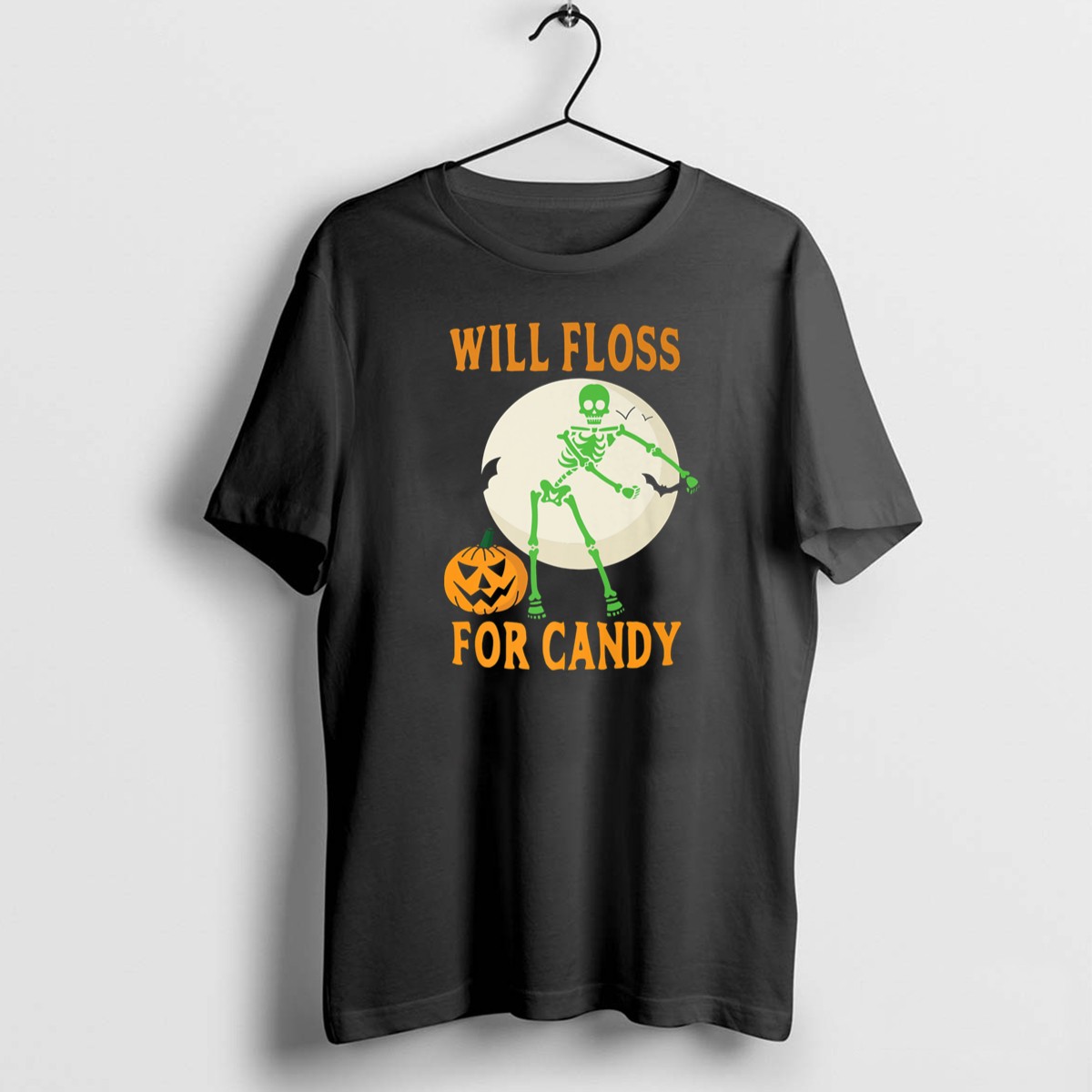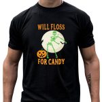 Get ready for a spooktacular Halloween with our “Will Floss For Candy” Skeleton T-Shirt! Perfect for both kids and adults, this fan-made design brings a playful twist to your costume while keeping it casual and comfortable. Ideal for Halloween parties, themed events, or just a fun day of trick-or-treating, this shirt will surely be a hit among candy lovers and skeleton enthusiasts alike. Printed in the USA, it combines style with a hint of festive humor, making it a must-have for the season!