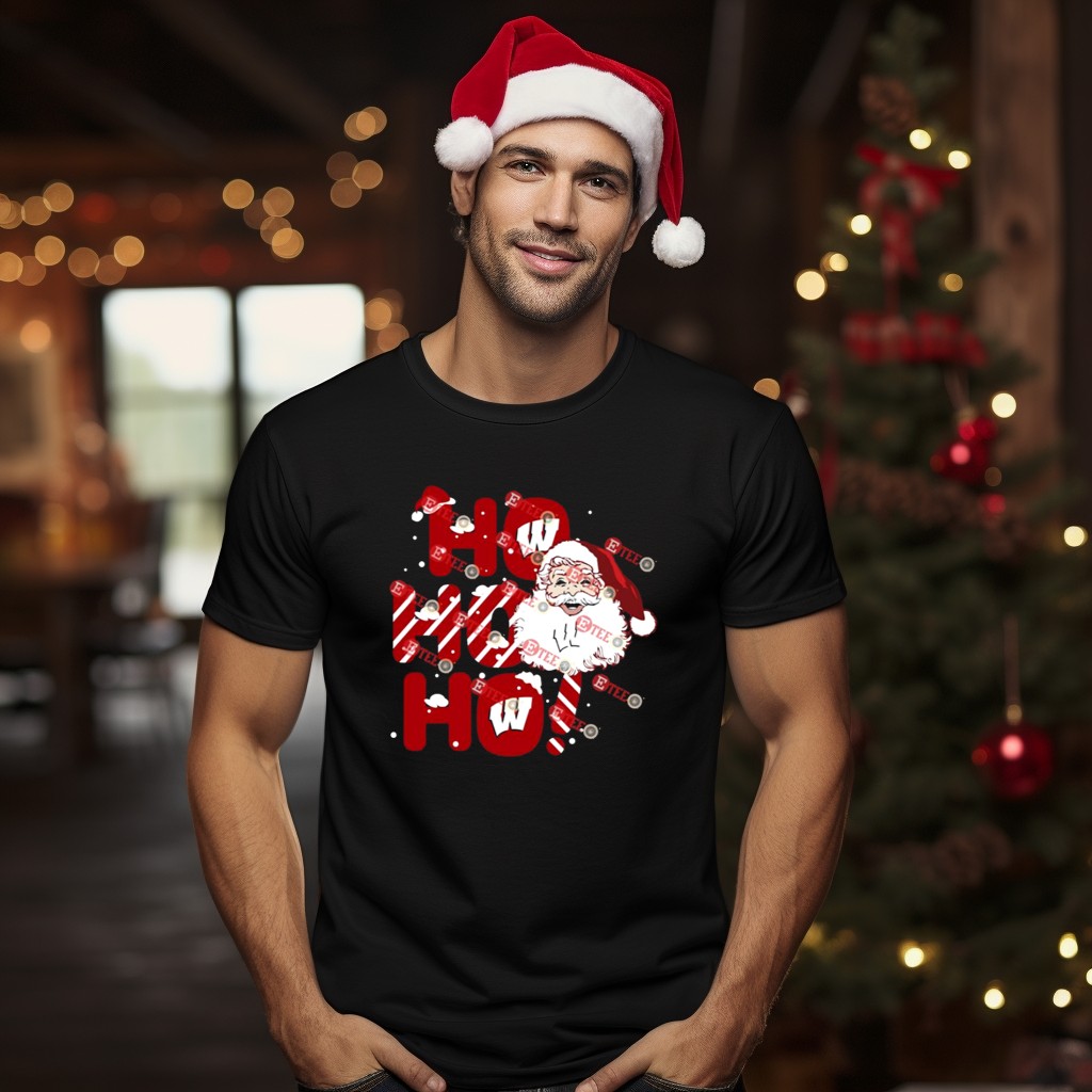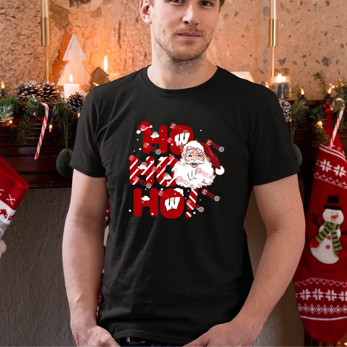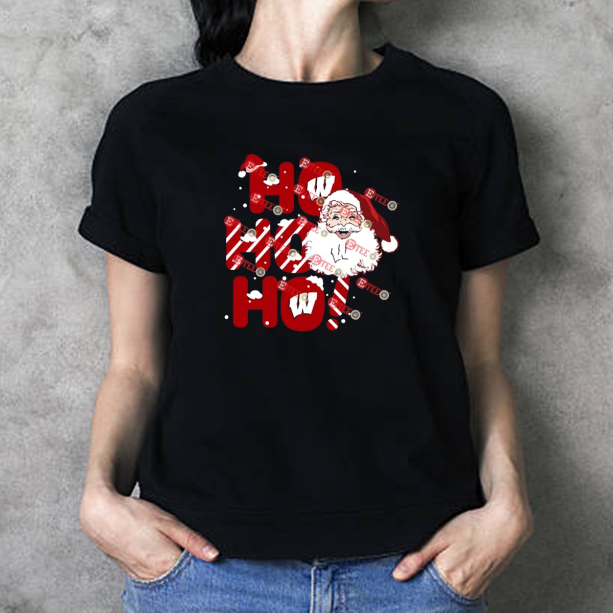 Wisconsin Badgers Santa Claus Ho Ho Ho Christmas Holiday Cheer T-Shirt