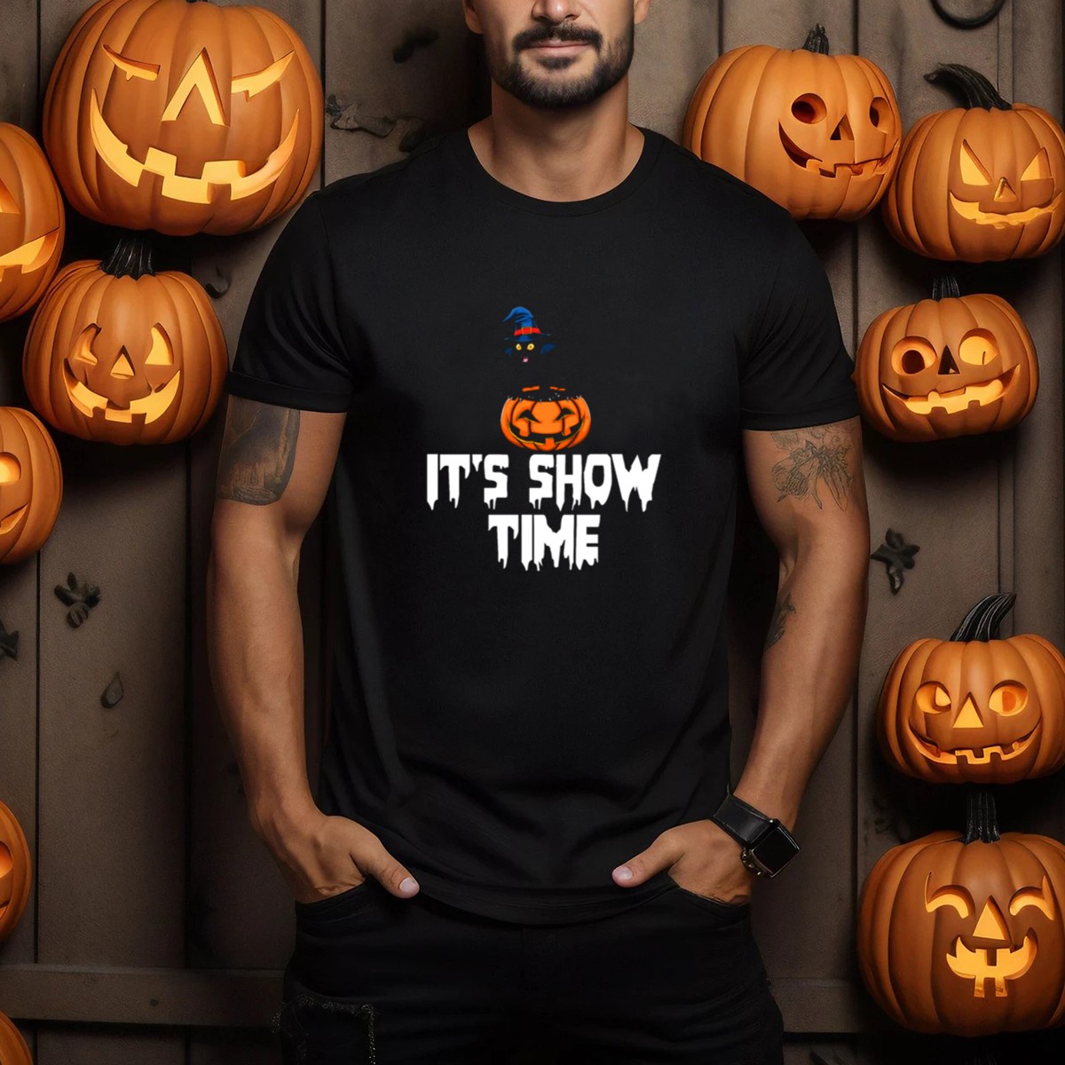 Get ready to cast a spell this Halloween with our Witch Cat Halloween Pumpkin Its Show Time T-Shirt! Perfect for cat lovers and Halloween enthusiasts alike, this fan-made design showcases a charming witch cat surrounded by festive pumpkins, making it an ideal choice for casual wear, themed events, or just a cozy day at home. Crafted with care and printed in the USA, this T-shirt combines comfort and style, ensuring you’ll be the star of any Halloween gathering.