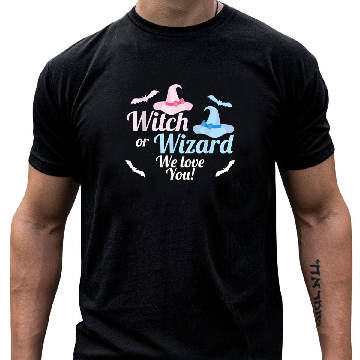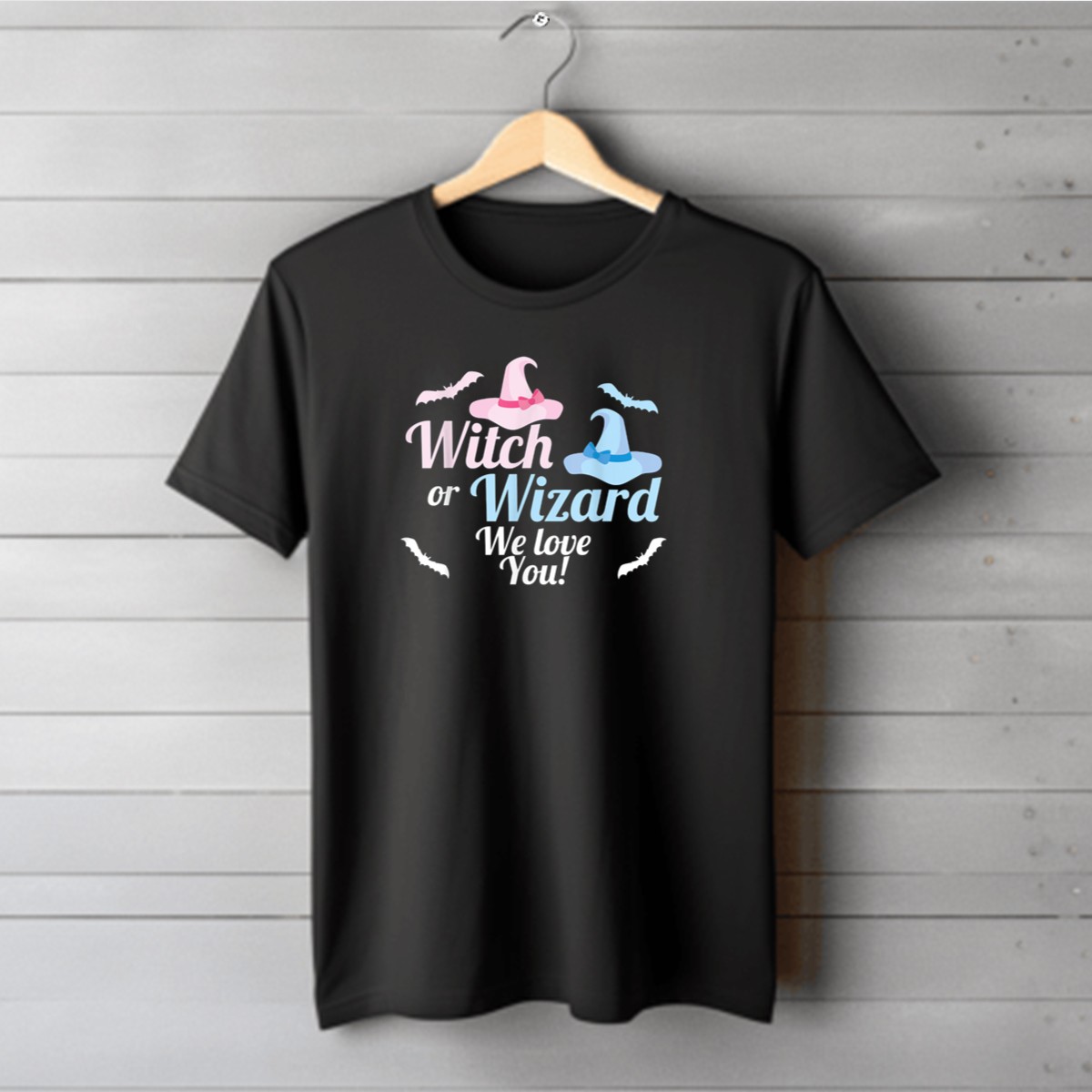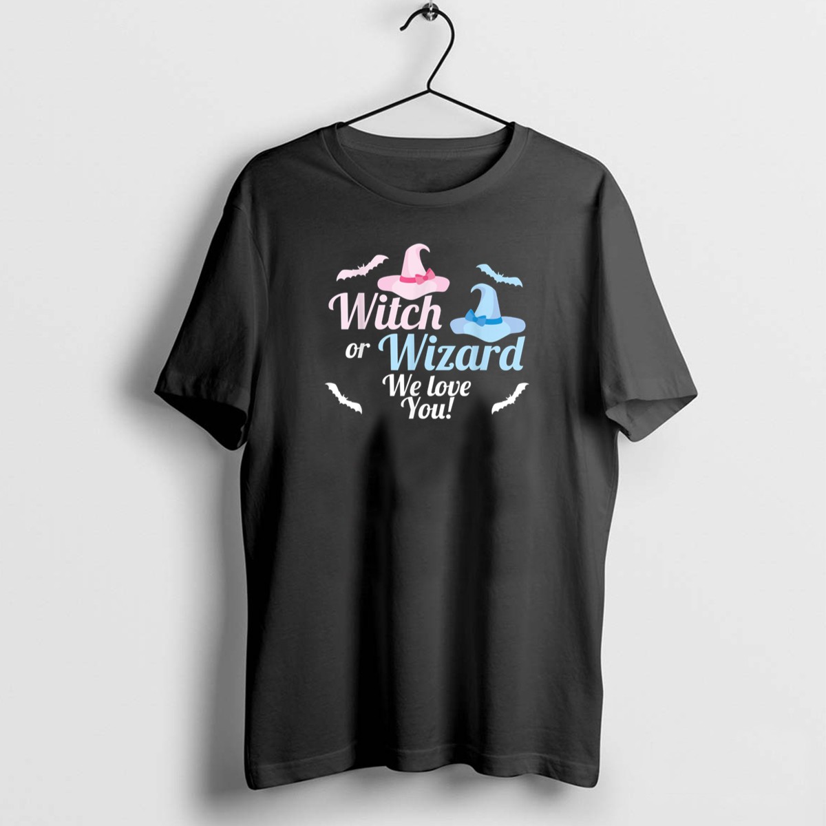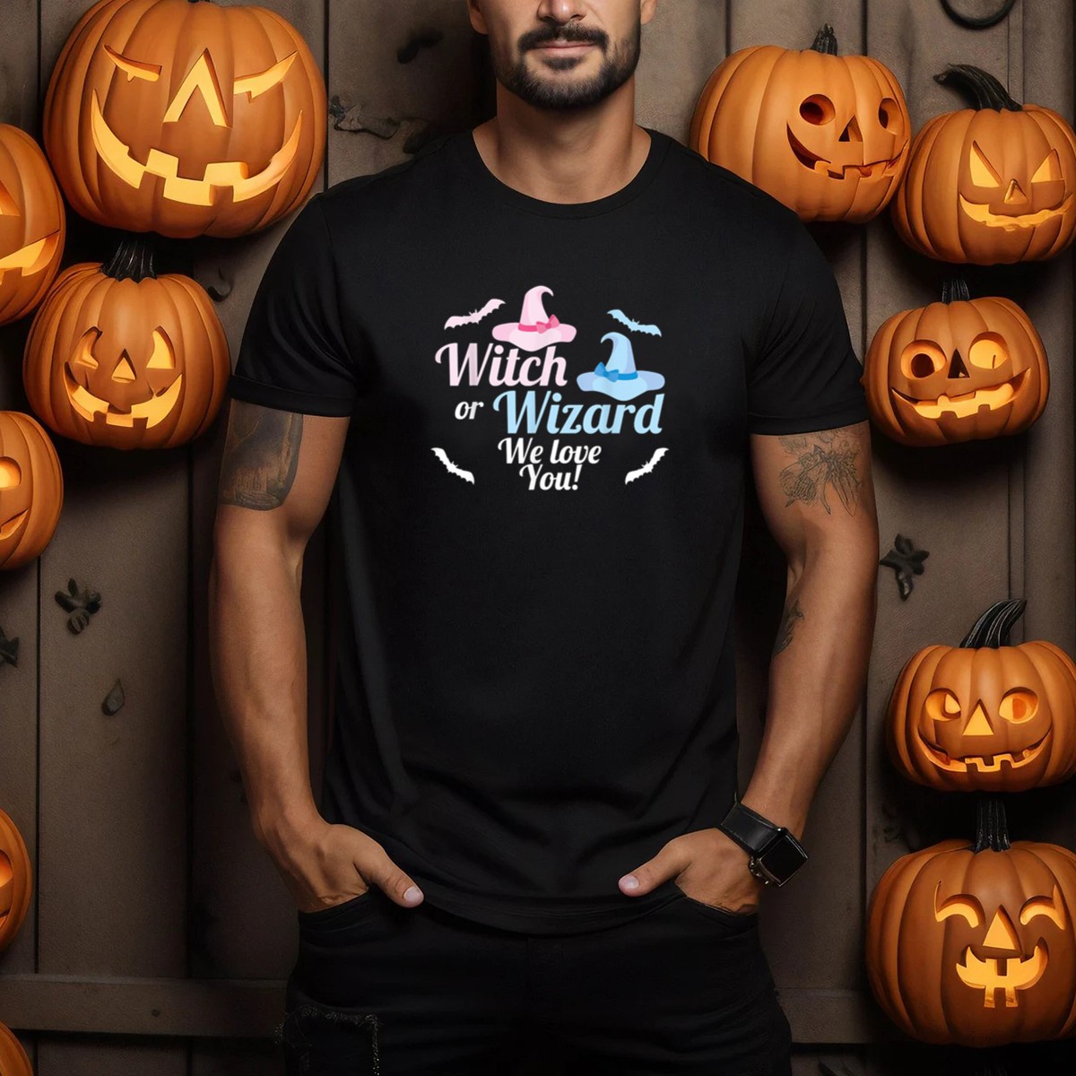 Celebrate the magic of gender reveals and Halloween with our enchanting “Witch Or Wizard We Love You” T-shirt! Perfect for fans of spooky themes and whimsical celebrations, this shirt is designed for anyone ready to embrace the excitement of welcoming a little one. Made for casual wear, themed events, or daily adventures, this fan-made design showcases adorable bats and playful hats, making it a unique addition to your wardrobe. Crafted with care and printed in the USA, this T-shirt promises to be a hit at any gathering!