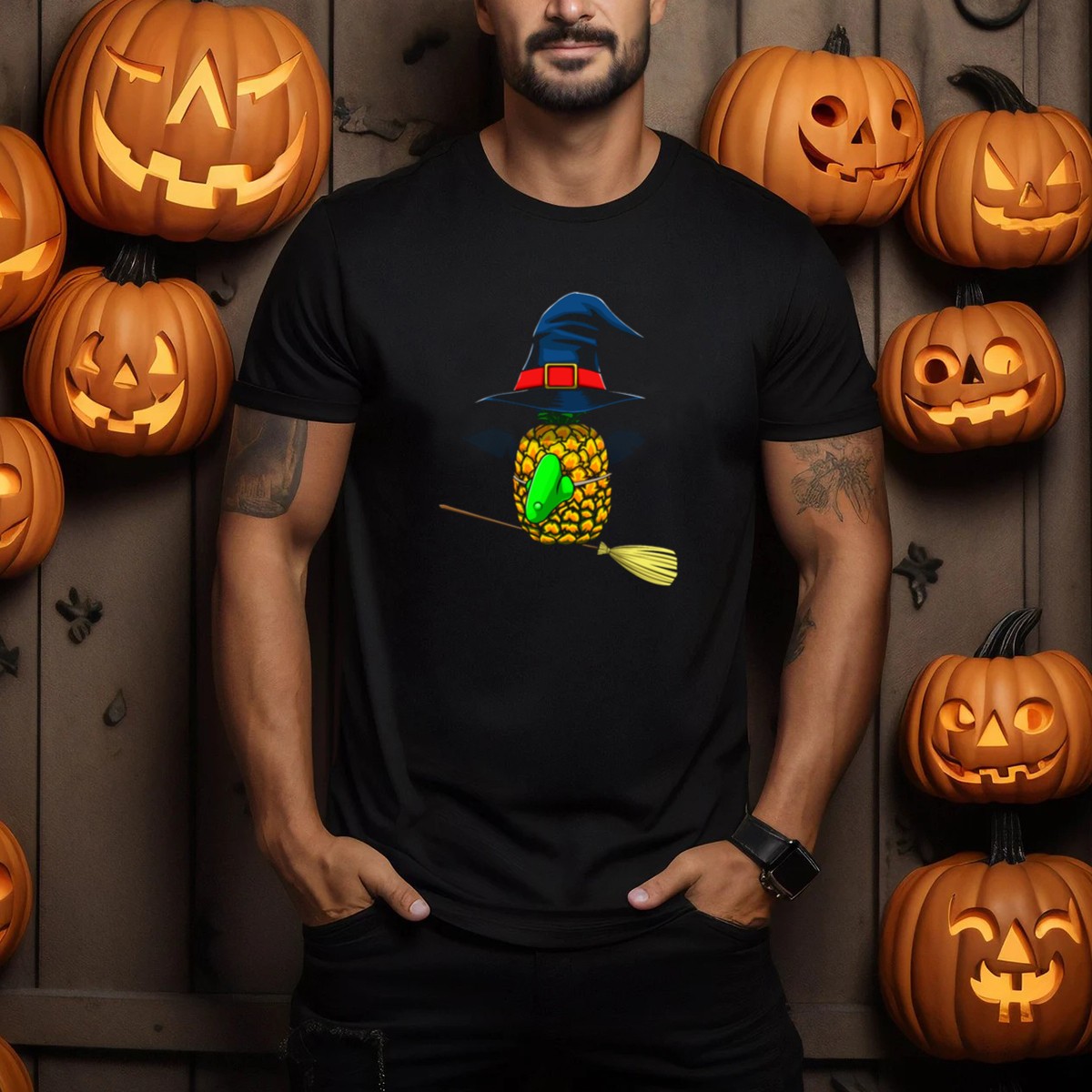 Embrace your quirky side this Halloween with our Witch Pineapple Riding Broomstick Funny T-Shirt! Perfect for those who love to blend humor with a dash of spooky charm, this shirt is designed for anyone looking to stand out at themed events, casual gatherings, or just during daily wear. Made in the USA, this fan-made design showcases a playful twist on traditional Halloween motifs, making it a unique addition to your wardrobe that’s sure to spark conversations.