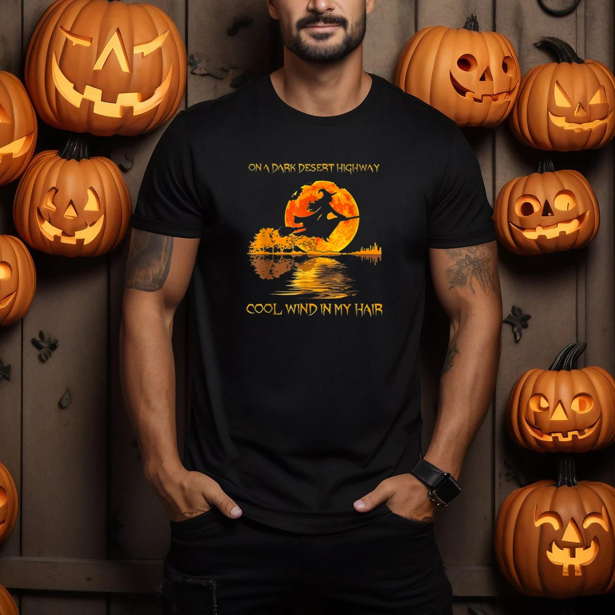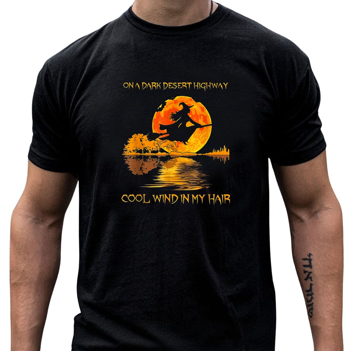 Be the first to review “Witch Riding Broom On A Dark Desert Highway Cool Wind In My Hair Halloween T-Shirt”