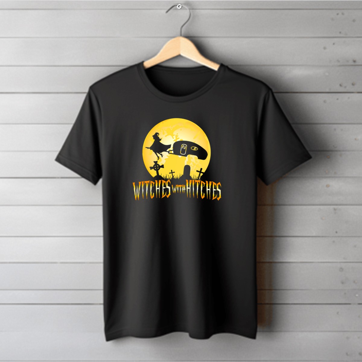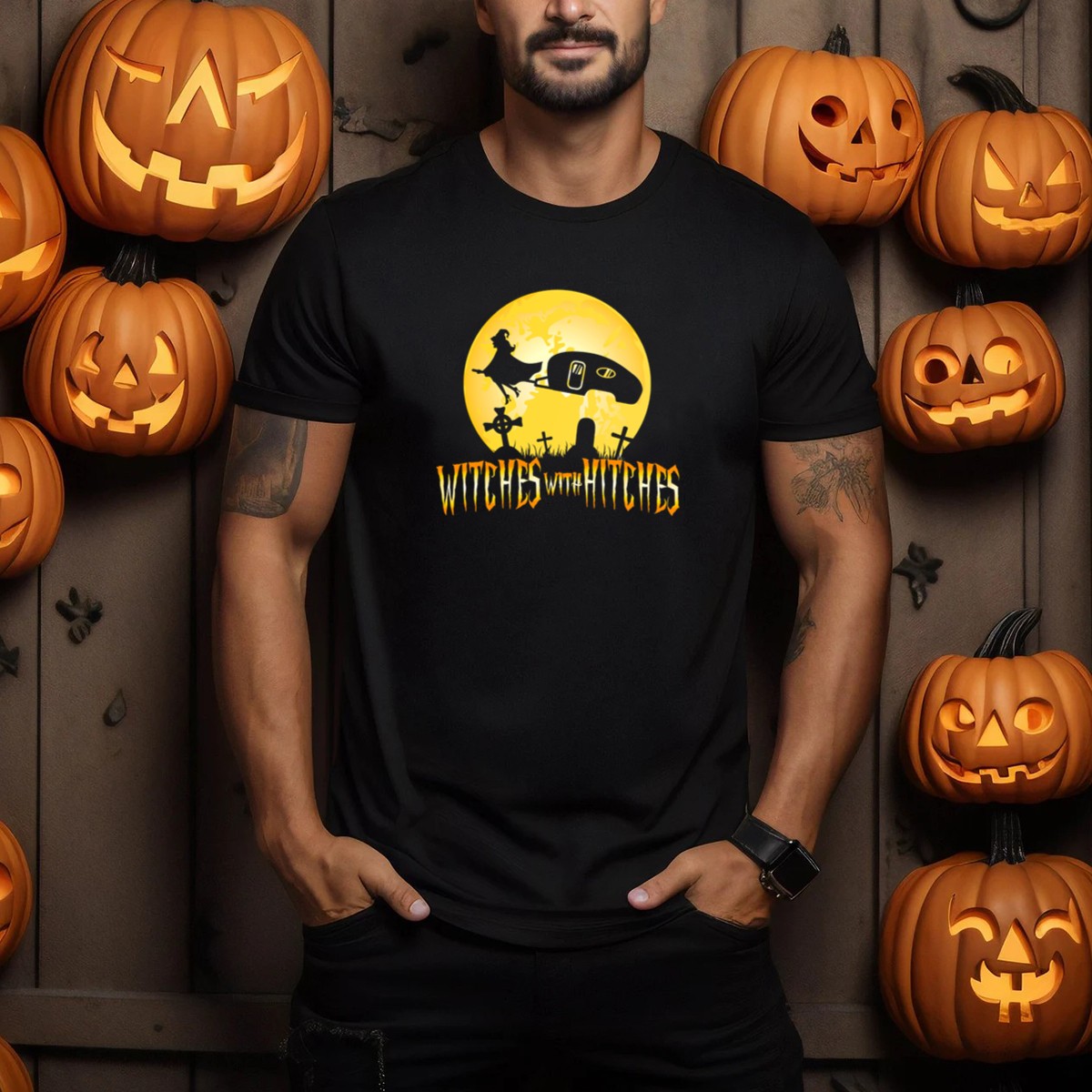 Embrace the spooky spirit of Halloween with our Witches With Hitches T-shirt, perfect for those who love a little adventure on the road and a touch of magic in the air. Designed for fans of camping, trailers, and all things witchy, this shirt is ideal for themed events, casual outings, or just lounging at home. Show off your unique style and love for the season with this fan-made design, proudly printed in the USA!