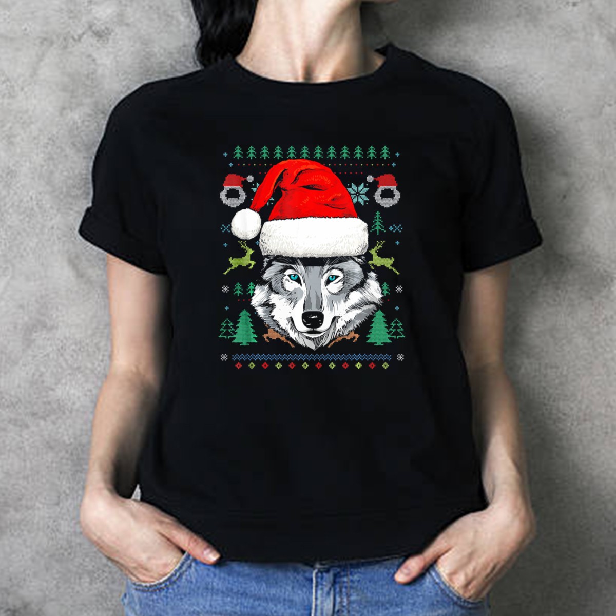 Get ready to spread holiday cheer with our Wolf Santa Hat Reindeer Snowflakes Trees Ugly Christmas T-Shirt! Perfect for festive gatherings, office parties, or just cozying up at home, this fun and whimsical design is ideal for anyone who loves to embrace the spirit of the season. Made with a soft and breathable fabric, it’s a great way to showcase your holiday spirit while staying comfortable and stylish. The fan-made design is proudly printed in the USA, ensuring a unique addition to your holiday wardrobe.