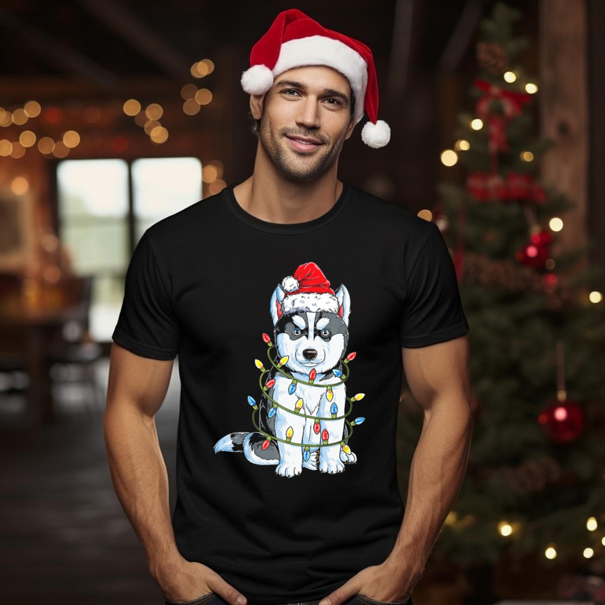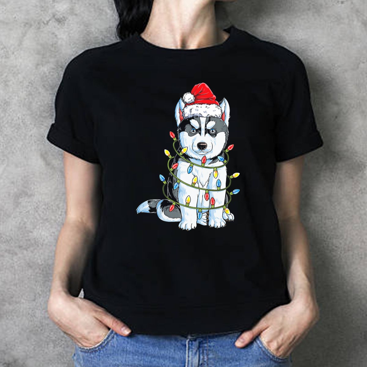 Celebrate the holiday spirit with our adorable Wooly Husky Santa Wrapped In Christmas Lights T-Shirt! Perfect for dog lovers and festive enthusiasts alike, this charming design is ideal for casual wear, themed events, or simply spreading joy during the holiday season. Made for comfort and style, this shirt is a delightful addition to your wardrobe that showcases your love for both Christmas and our furry friends.