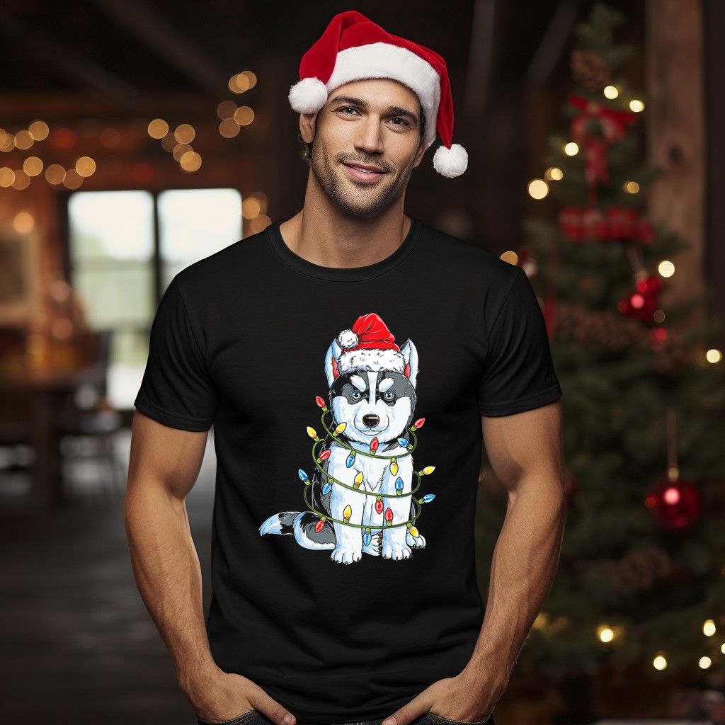 Get into the holiday spirit with our Wooly Husky Santa Wrapped In Christmas Lights T-Shirt! Perfect for dog lovers and festive enthusiasts alike, this fun and playful design captures the joy of the season. Whether you’re attending a casual holiday gathering, a themed event, or just enjoying daily wear, this shirt is sure to spark smiles and bring a warm cheer to any occasion. Made with quality in mind, this fan-made design is proudly printed in the USA, making it a unique addition to your wardrobe.