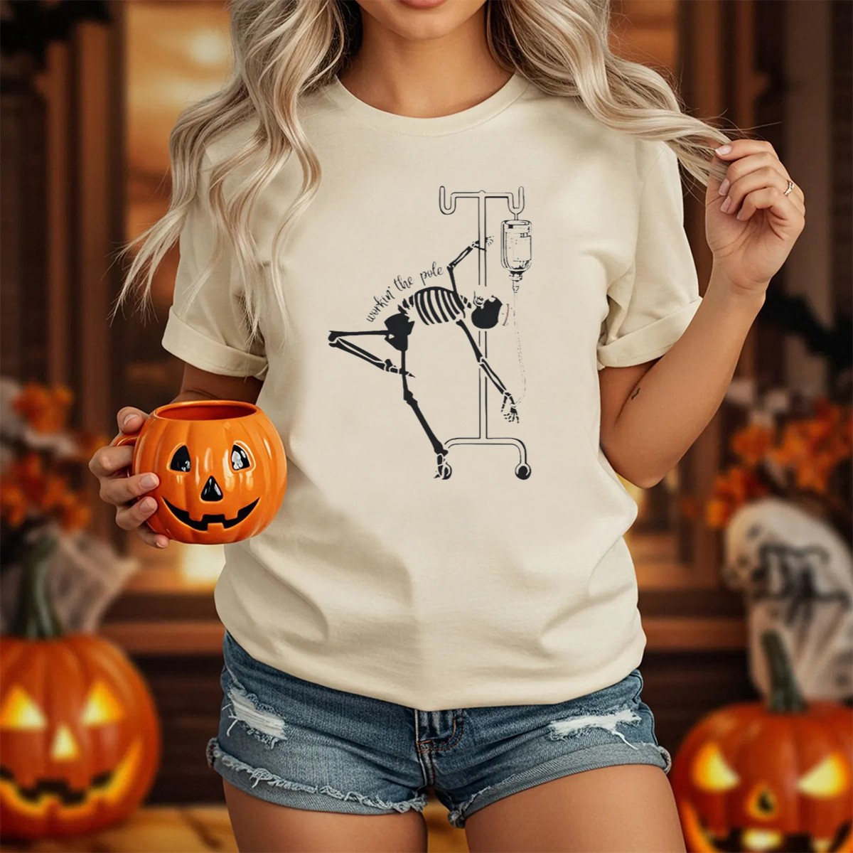 Celebrate the Halloween spirit with our Workin The Pole Skeleton IV T-Shirt, designed for those who love to embrace the fun and festive vibes of the season! This unique graphic tee is perfect for themed events, casual outings, or just daily wear. With its fan-made design proudly printed in the USA, you’ll not only look great but also showcase your love for playful Halloween spirit!