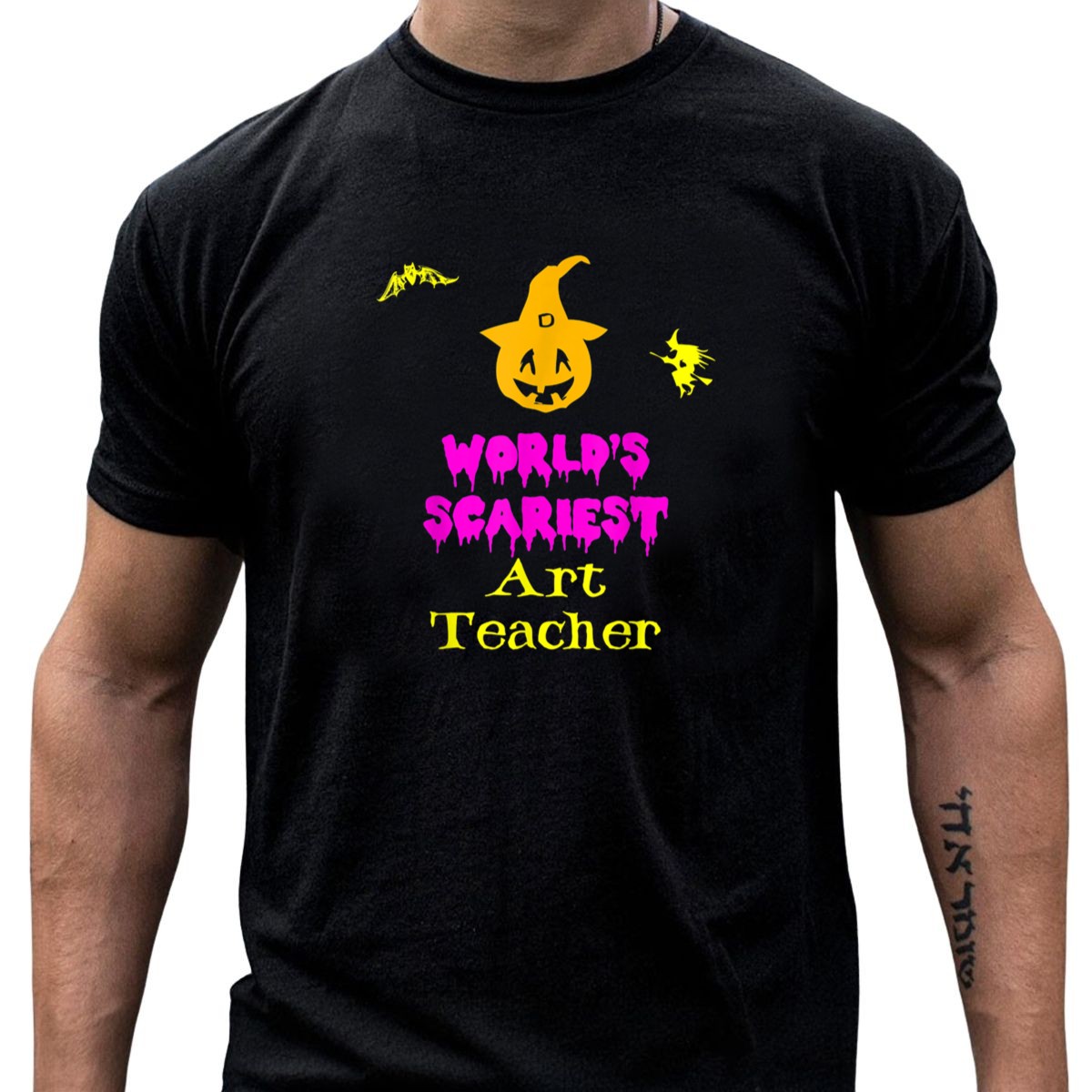 Worlds Scariest Art Teacher Halloween Pumpkin Bat Witch T-Shirt