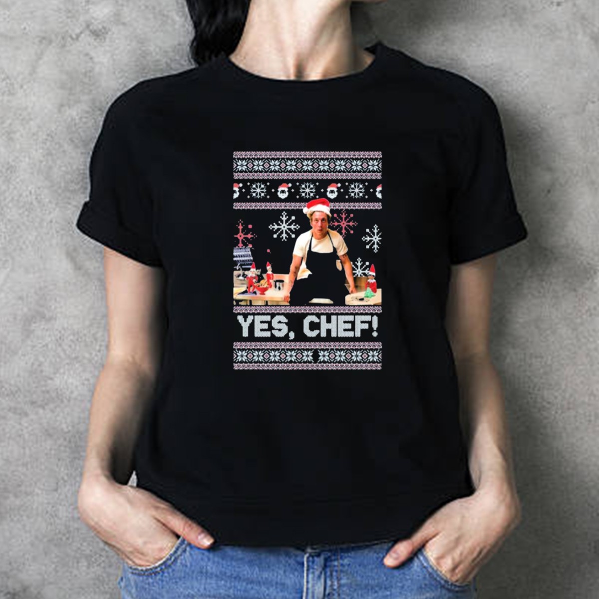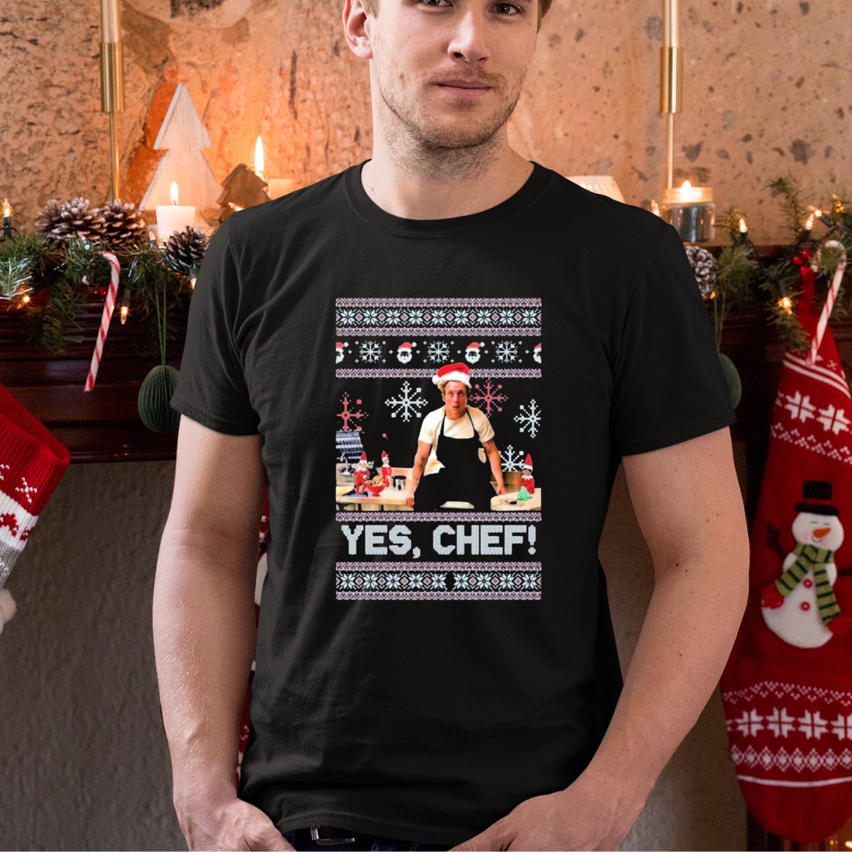 Celebrate the holiday spirit with our “Yes Chef Snowflakes Christmas Elves Santa Hat” T-Shirt! Perfect for culinary enthusiasts and festive gatherings, this fan-made design captures the joy of the season with a whimsical touch. Whether you’re whipping up holiday treats in the kitchen or attending a themed event, this shirt is your go-to choice for comfortable and stylish casual wear. Made in the USA, it combines playful design with high-quality materials for a shirt that stands out during the most wonderful time of the year.