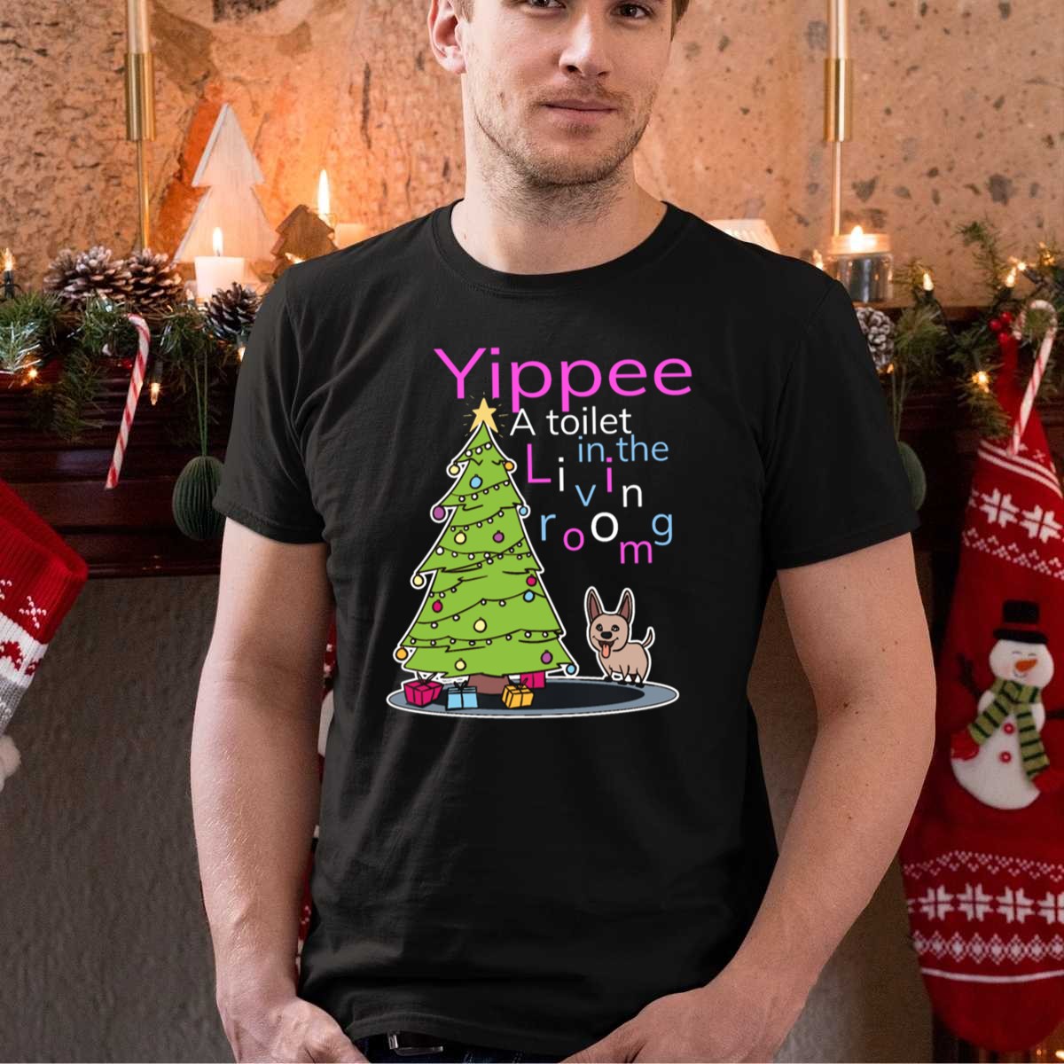 Celebrate the holiday season with a touch of humor wearing our “Yippee A Toilet In The Living Room” Funny Dog Christmas Tree T-Shirt. Perfect for dog lovers and those who appreciate a good laugh, this shirt is ideal for casual outings, themed events, or simply lounging at home. Made for comfort and style, this fan-made design is printed in the USA, ensuring you stand out during all your festive gatherings.