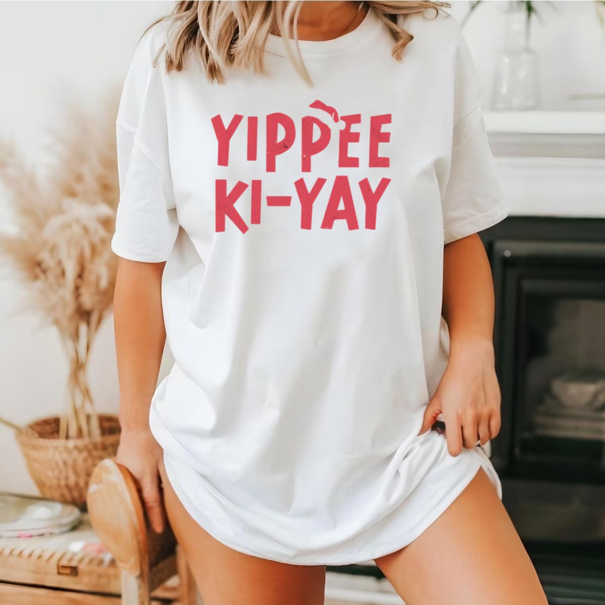 Yippee Ki Yay Christmas Holiday Santa Hat T Shirt