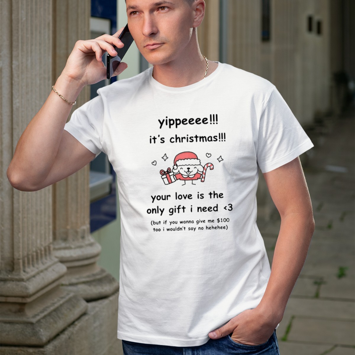 Celebrate the holiday spirit with our “Yippeee It’s Christmas Your Love Is The Only Gift I Need” T-shirt, featuring an adorable Santa sheep holding a gift. This fan-made design is perfect for anyone who loves to spread joy during the festive season. Ideal for casual wear, themed events, or daily outings, this shirt is a charming way to showcase your holiday cheer and warmth. Made with comfort in mind, it’s a unique addition to your all-season wardrobe that embodies the true spirit of giving.