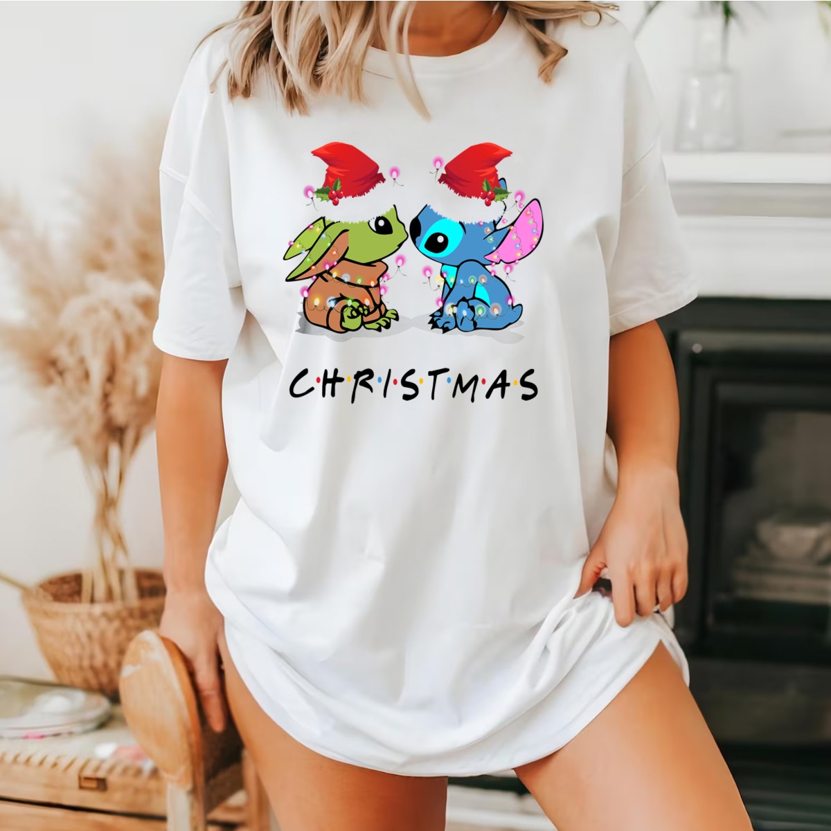 Embrace the festive spirit with our Yoda And Stitch Christmas Santa Hats Holiday Lights T-Shirt! Perfect for fans of both iconic characters, this fun and whimsical tee is designed for anyone looking to spread holiday cheer at casual gatherings, themed events, or simply during daily wear. Made in the USA with a unique fan-made design, this shirt combines comfort and creativity to make your holiday season even brighter.
