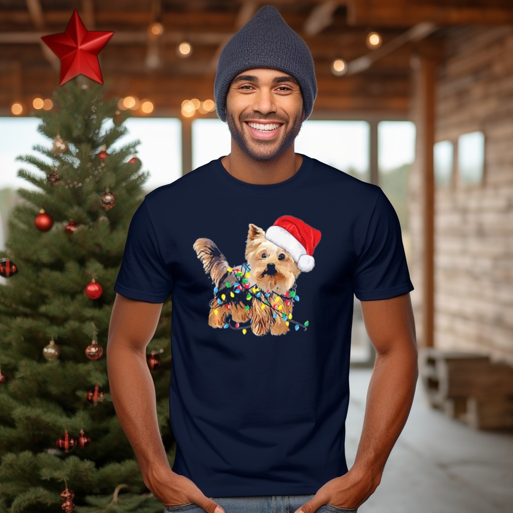 Be the first to review “Yorkie Christmas Santa Hat With Holiday Lights T-Shirt”