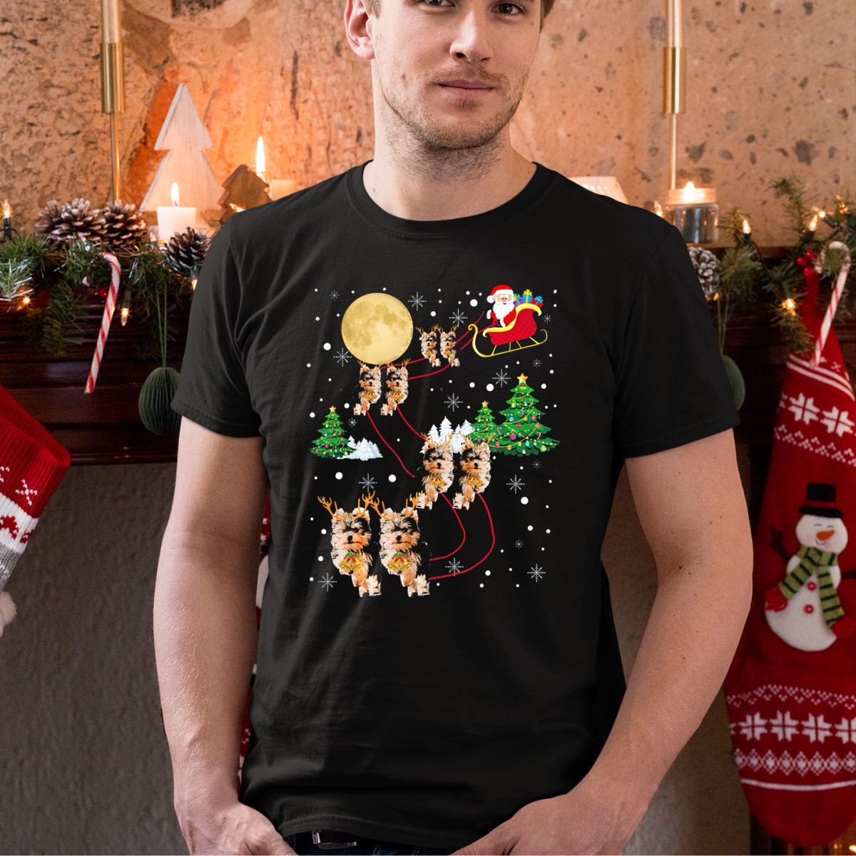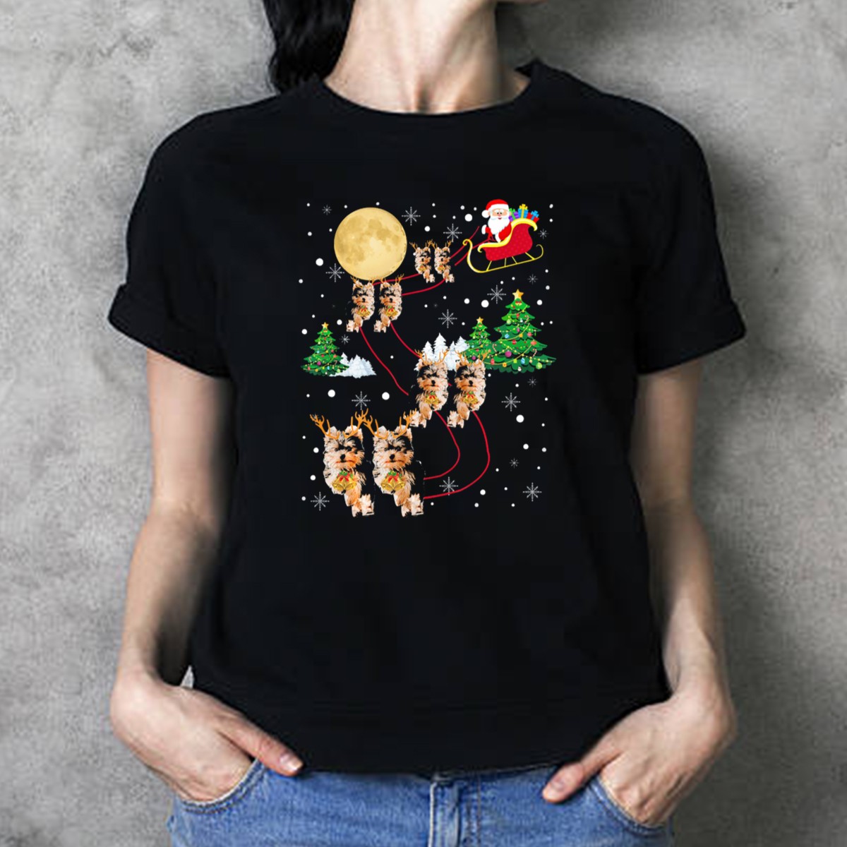 Be the first to review “Yorkie Christmas Santa Sleigh Dogs And Tree Snowflakes T-Shirt”