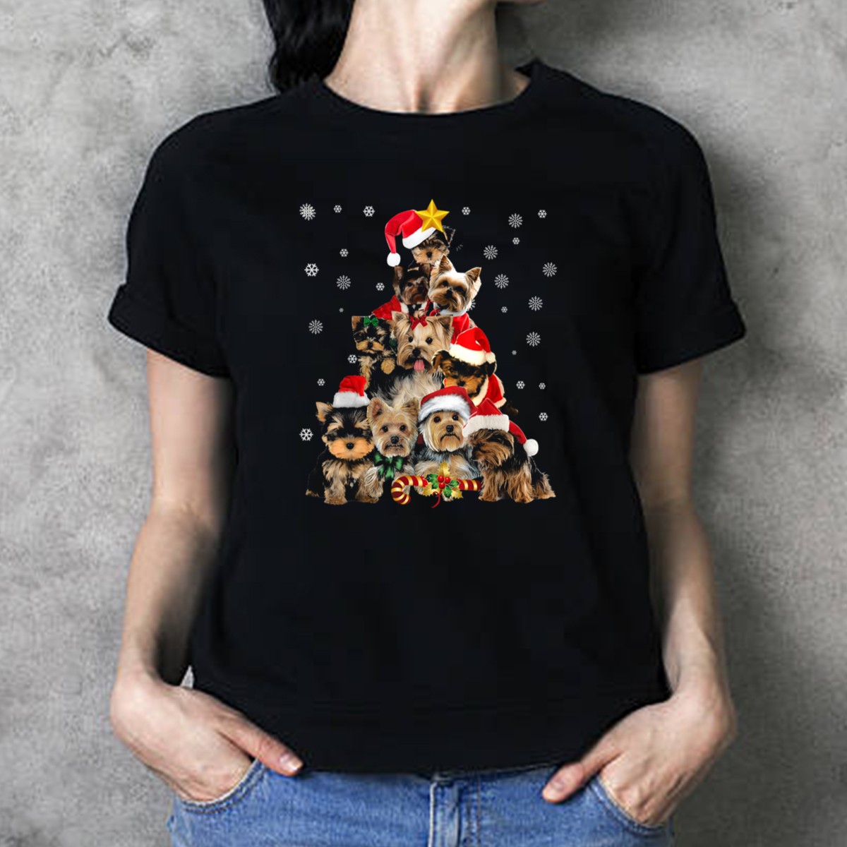 Celebrate the festive spirit with our Yorkie Christmas Tree With Santa Hats And Snowflakes T-Shirt! Perfect for dog lovers and Yorkie enthusiasts, this fun design is sure to bring joy to your holiday gatherings and themed events. Made for casual wear, it’s a wonderful choice for spreading cheer during the holiday season or simply showcasing your love for these adorable pups throughout the year.