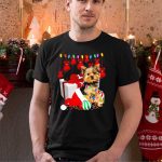 Yorkie Puppy In Santa Hat With Christmas Ornaments And Lights T Shirt
