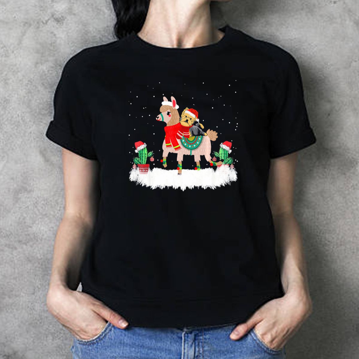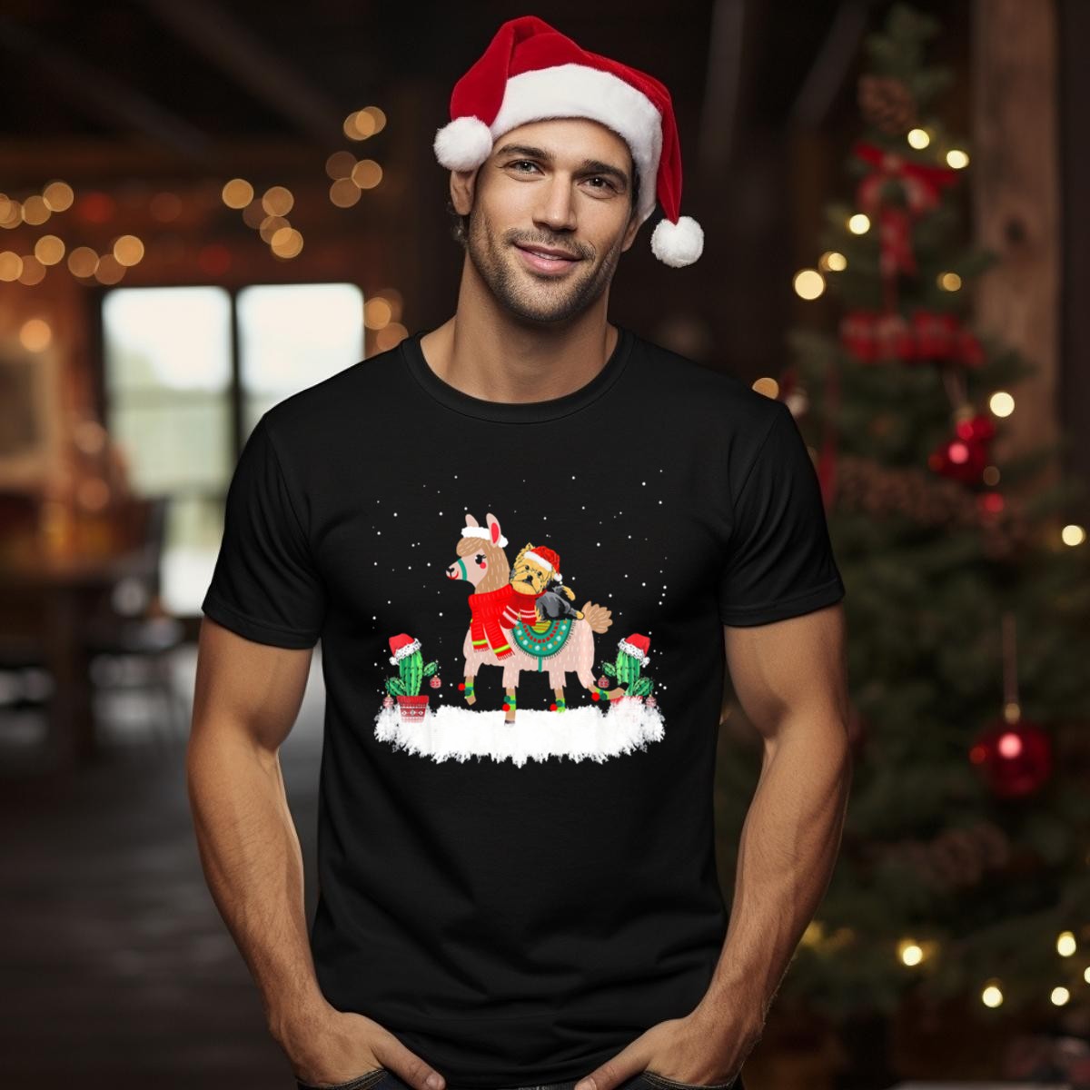 Be the first to review “Yorkshire Terrier In Santa Hat Riding Festive Llama With Christmas Cactus T Shirt”