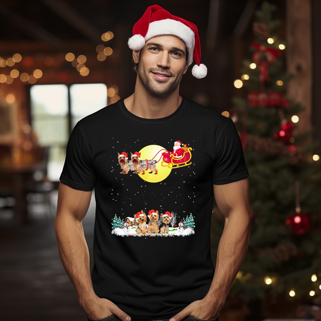 Be the first to review “Yorkshire Terrier Santa Sleigh Christmas Scene T-Shirt”