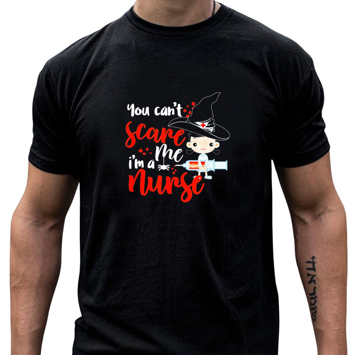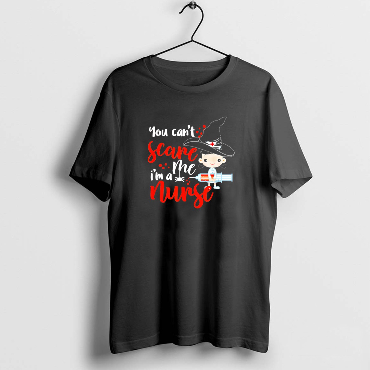 Celebrate your passion for nursing this Halloween with our “You Can’t Scare Me, I’m A Nurse” T-shirt, designed for fearless healthcare heroes. This fun and playful graphic T-shirt features a whimsical witch hat and syringe design, perfect for those who want to showcase their profession with a spooky twist. Ideal for themed events, casual outings, or daily wear, this shirt is a must-have for nurses who embrace their unique spirit while bringing smiles to their patients and colleagues alike.