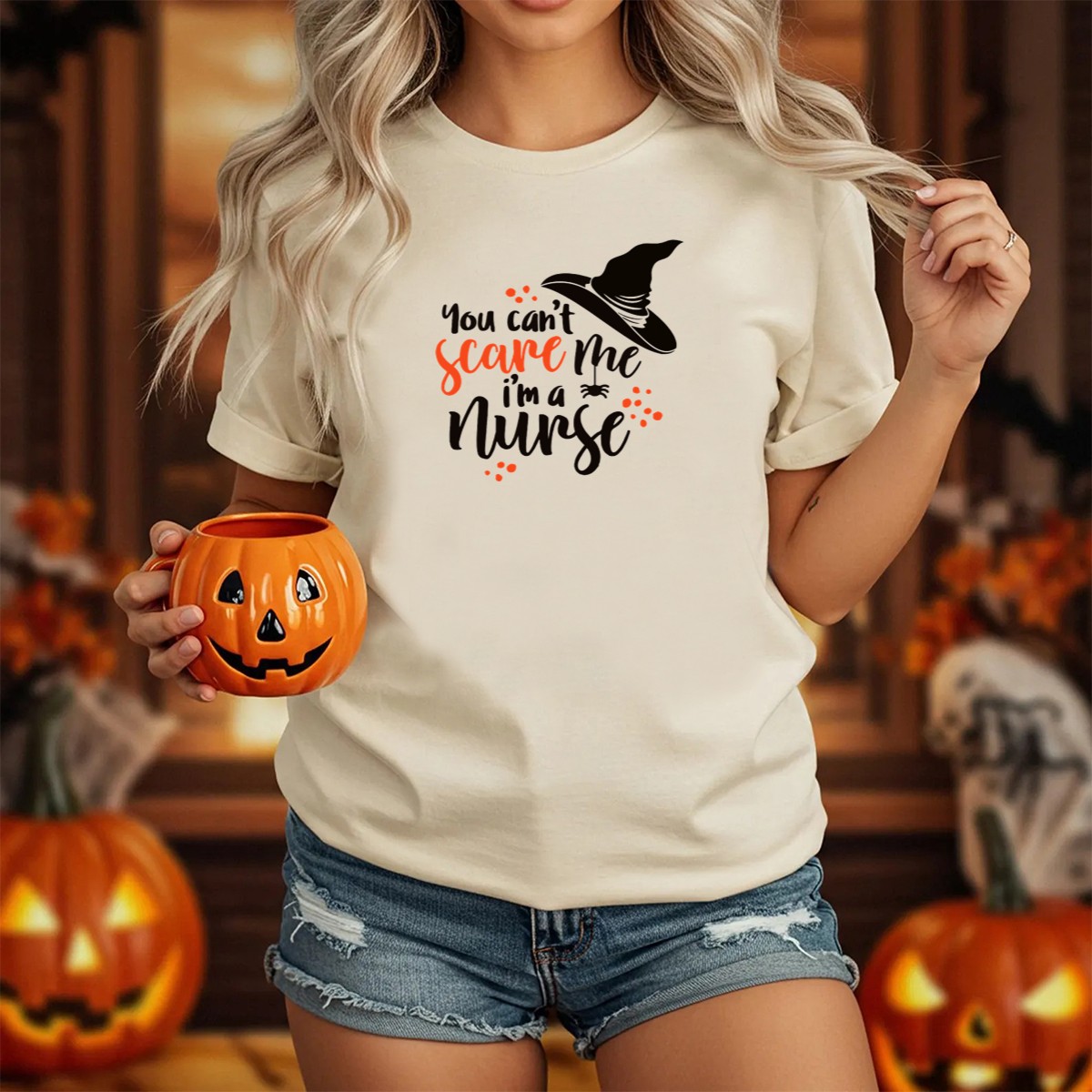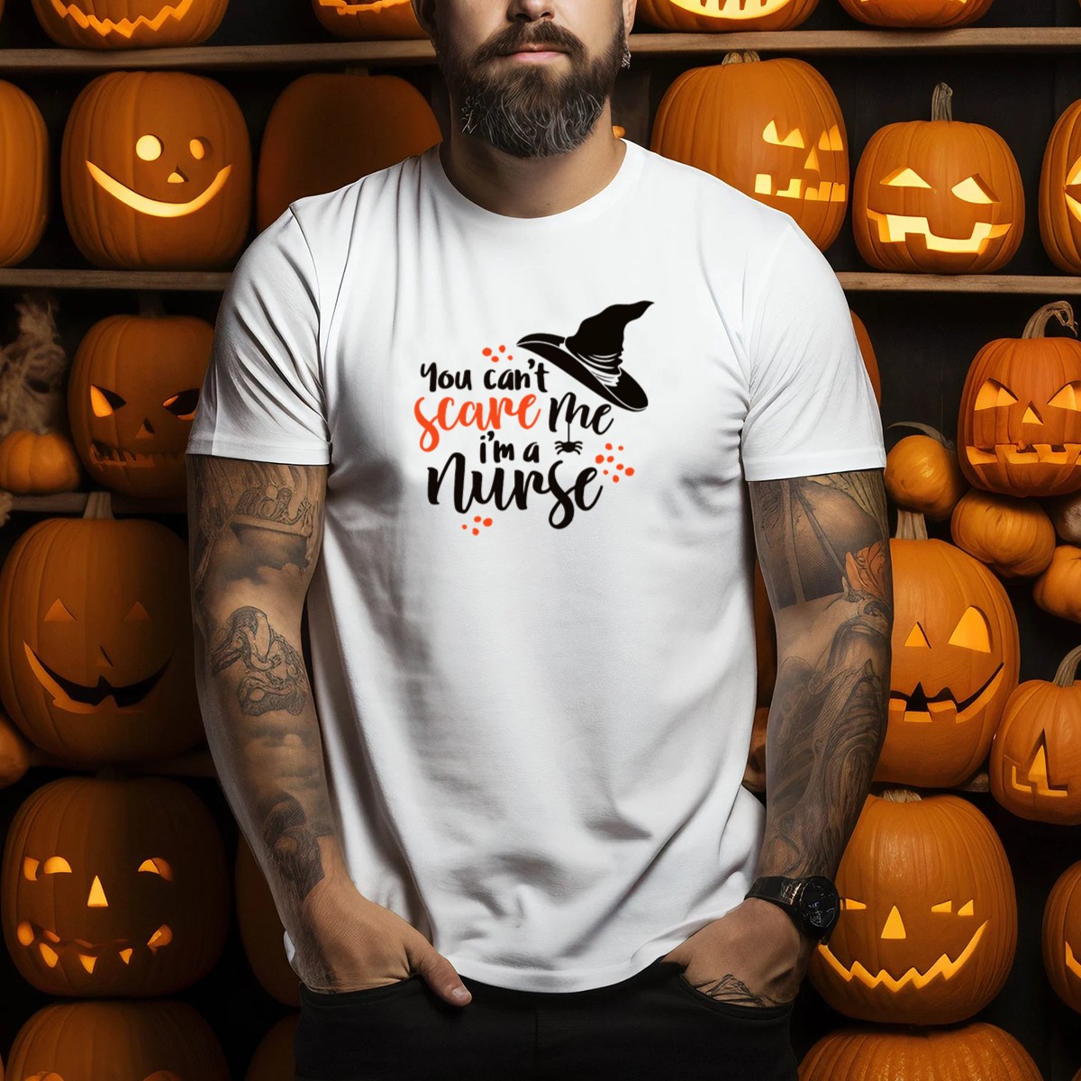 Celebrate your spooky side with our “You Can’t Scare Me, I’m A Nurse” Halloween T-shirt, perfect for healthcare heroes who enjoy a touch of humor and a dash of Halloween spirit. Designed for nurses and medical professionals, this shirt is ideal for themed events, casual outings, or just showing off your festive flair while on the job. With its fan-made design printed in the USA, this tee combines comfort and style, making it a must-have for any playful nurse this season.