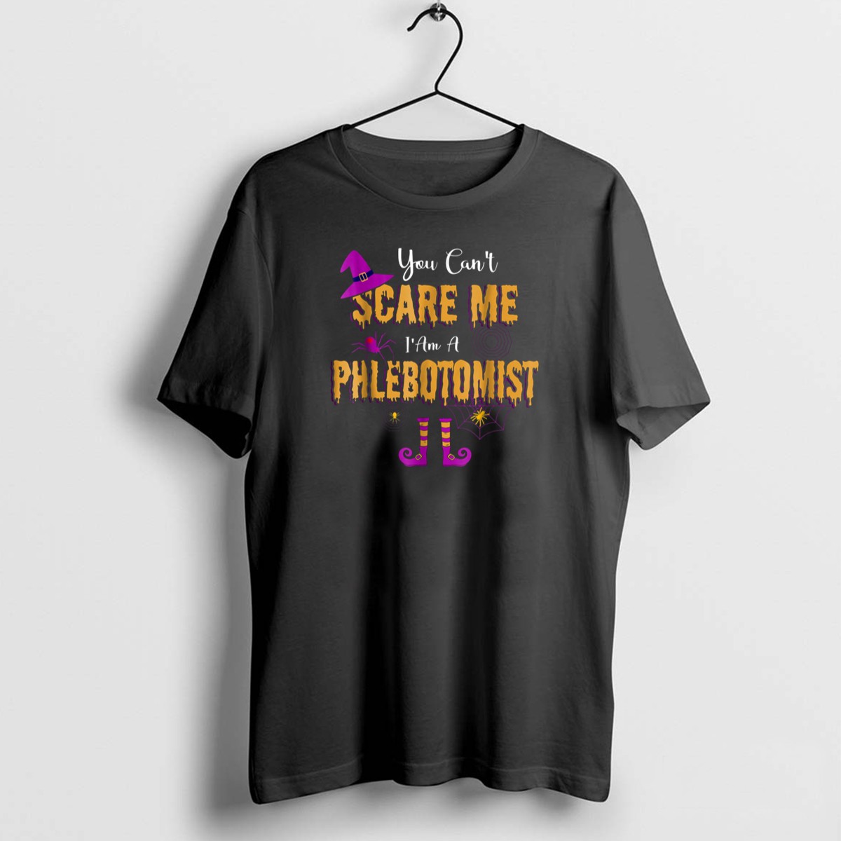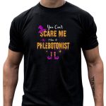 Celebrate your love for phlebotomy this Halloween with our “You Can’t Scare Me I’m A Phlebotomist” T-shirt, featuring an eye-catching design of a witch hat, spider, and webs. This shirt is perfect for phlebotomists, medical professionals, or anyone who wants to add a spooky twist to their wardrobe for themed events, casual outings, or daily wear. Made with a fan-made design printed in the USA, this T-shirt combines comfort and creativity, making it an essential addition to your all-season collection.