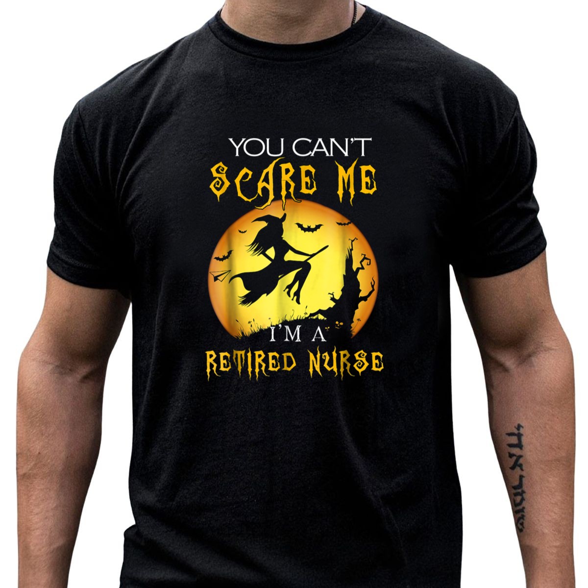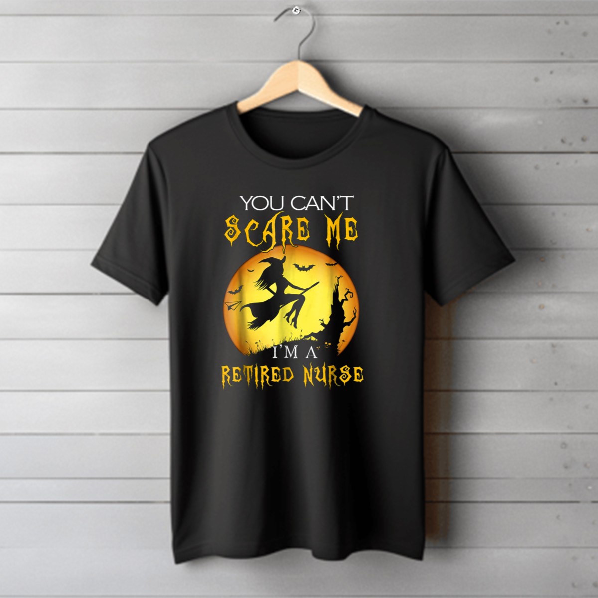 Celebrate your retired nursing career this Halloween with our “You Can’t Scare Me, I’m A Retired Nurse” graphic T-shirt! Perfect for nurses who embrace their spooky side, this shirt features a unique design of a witch flying among bats, making it an ideal choice for casual wear, themed events, or daily outings. Crafted for comfort and style, it’s a fan-made tribute printed right here in the USA!