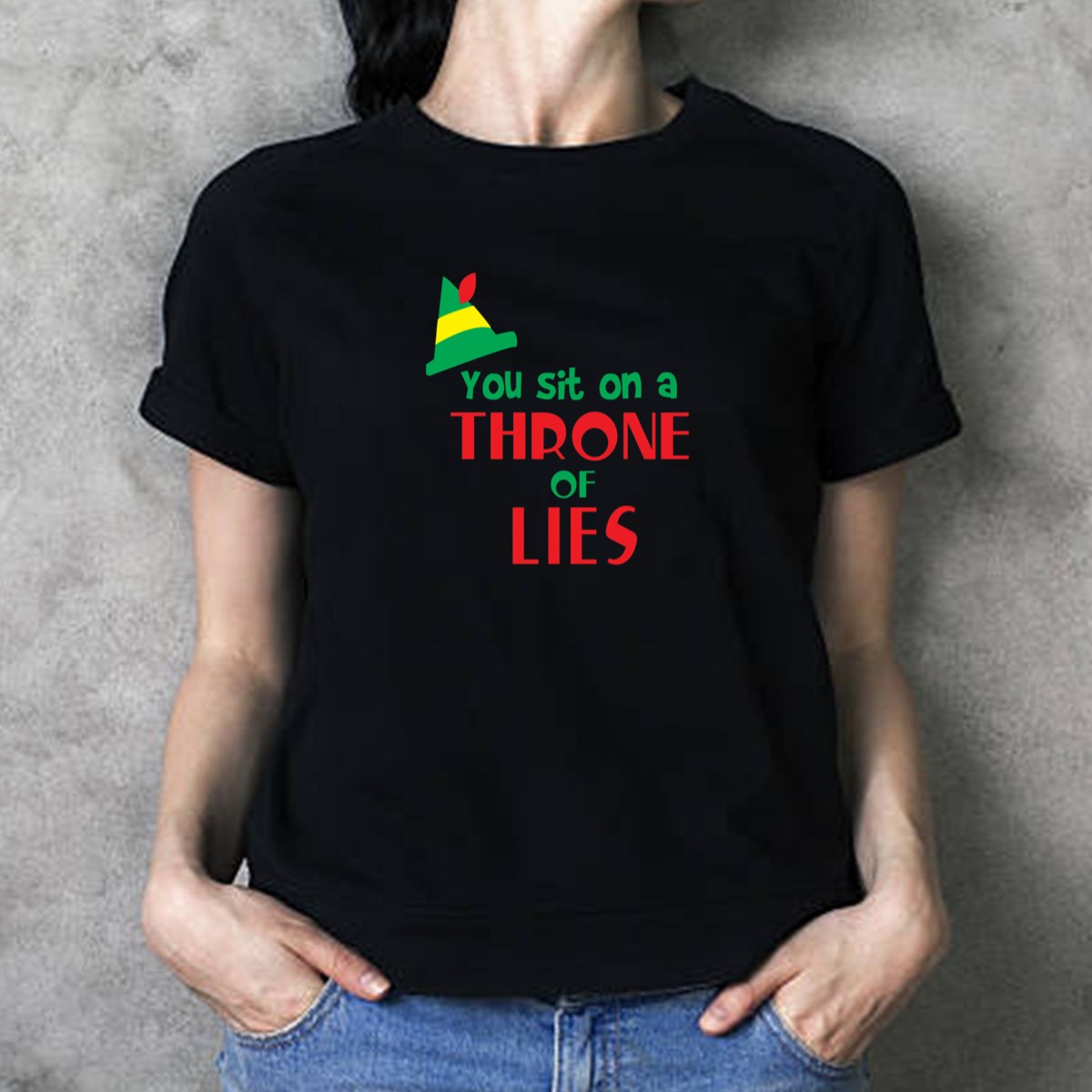 Embrace the holiday spirit with our “You Sit On A Throne Of Lies” Elf Christmas T-Shirt, a must-have for fans of festive fun and lighthearted humor! Perfect for family gatherings, themed parties, or casual outings, this shirt showcases a playful design that will have everyone smiling. Made for those who love to spread joy and laughter during the holiday season, it’s an eye-catching addition to your festive wardrobe that also makes a great gift for fellow Christmas enthusiasts!