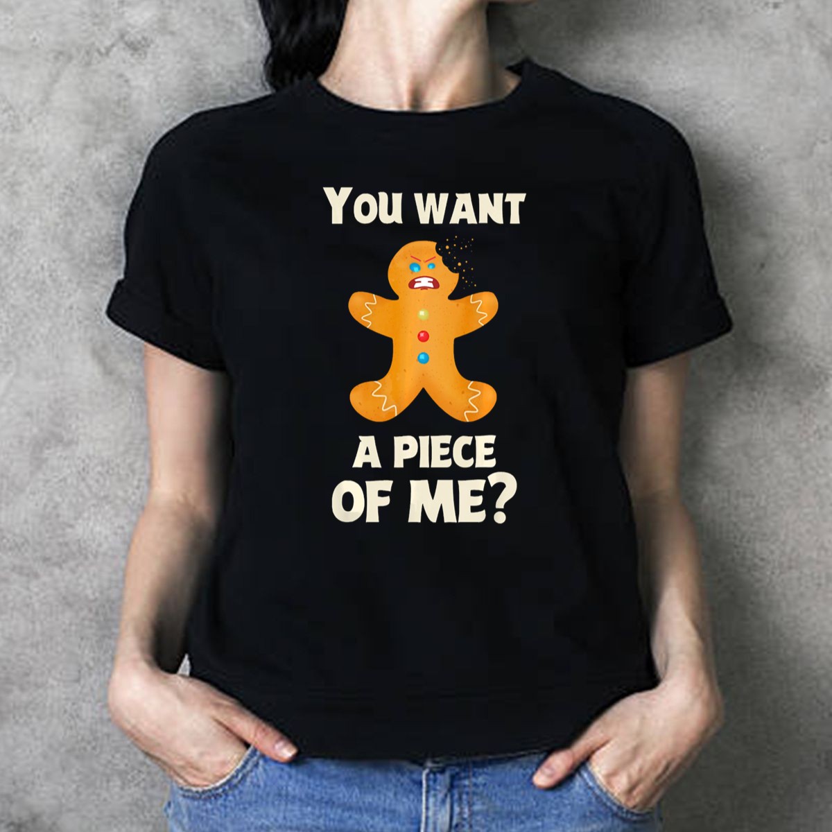 You Want A Piece Of Me Angry Gingerbread Man Funny Christmas T-Shirt